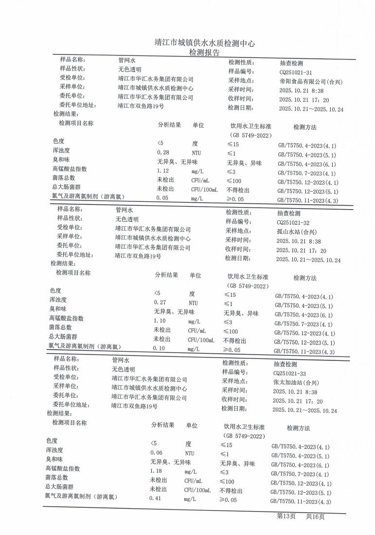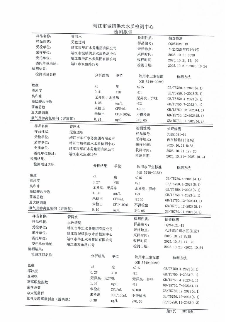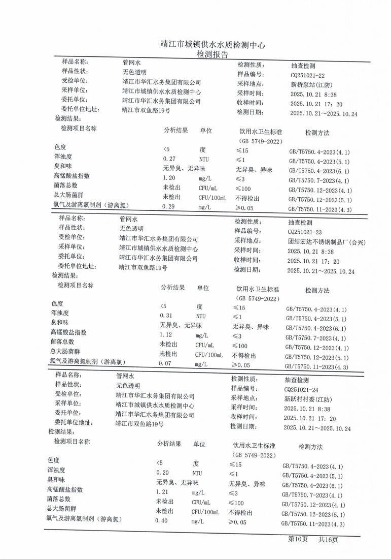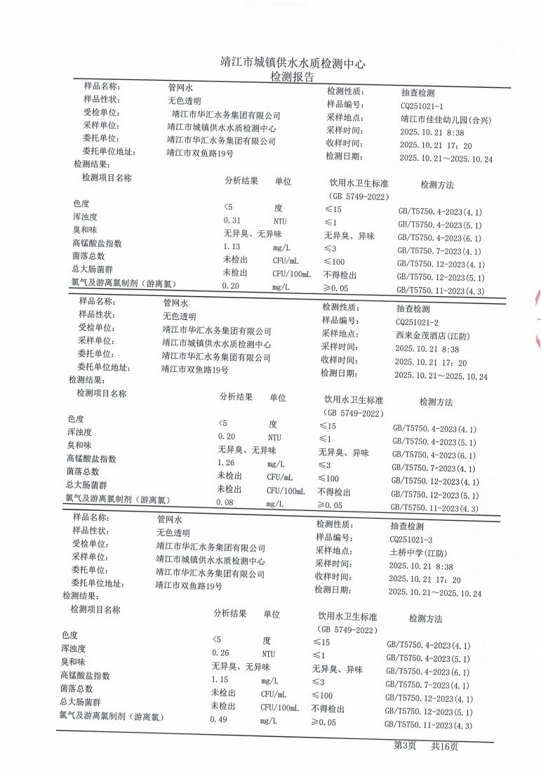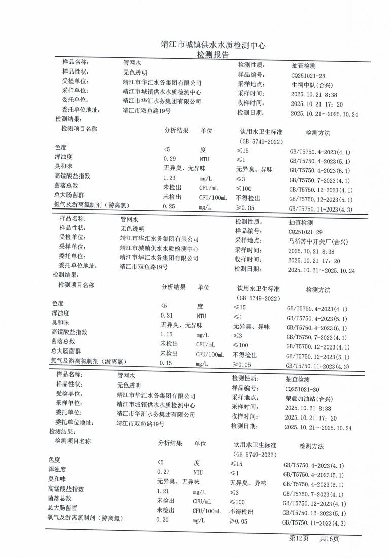 管网水检测报告2025.10.21