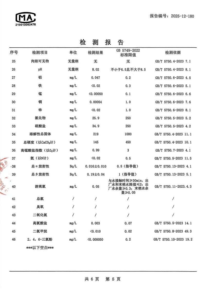 管网末梢水检测报告2025.12.5