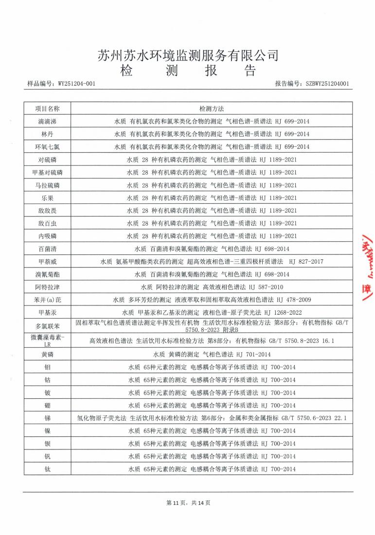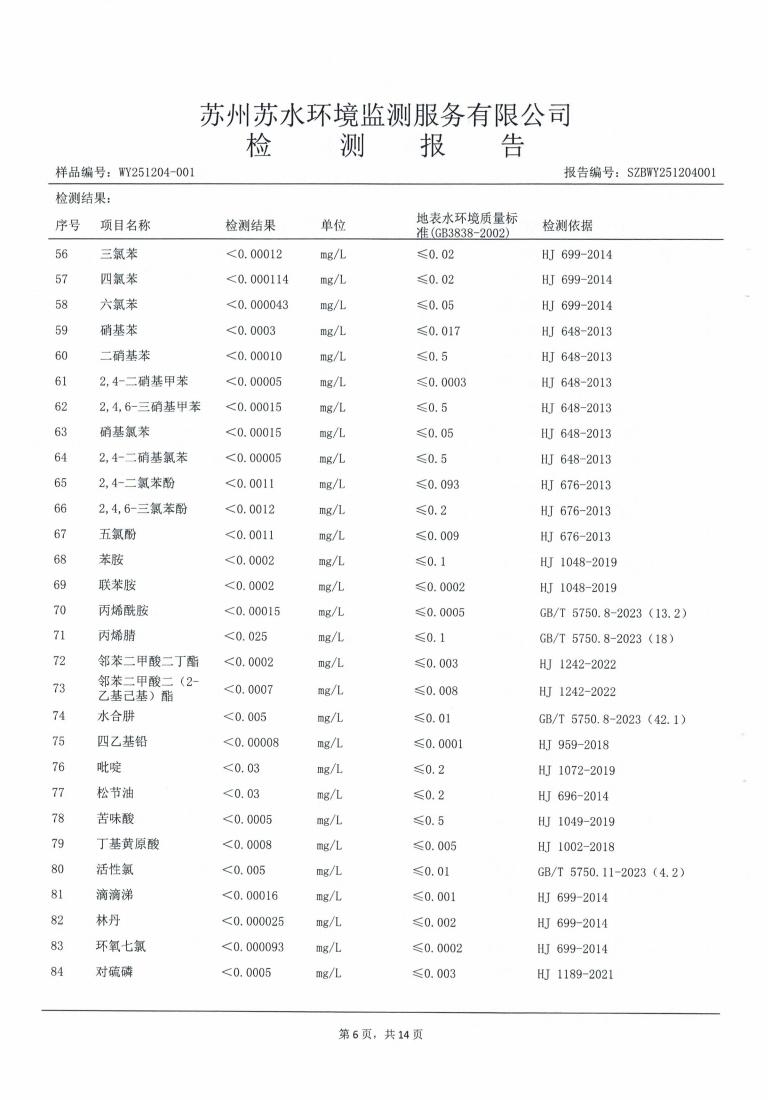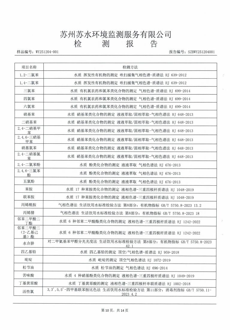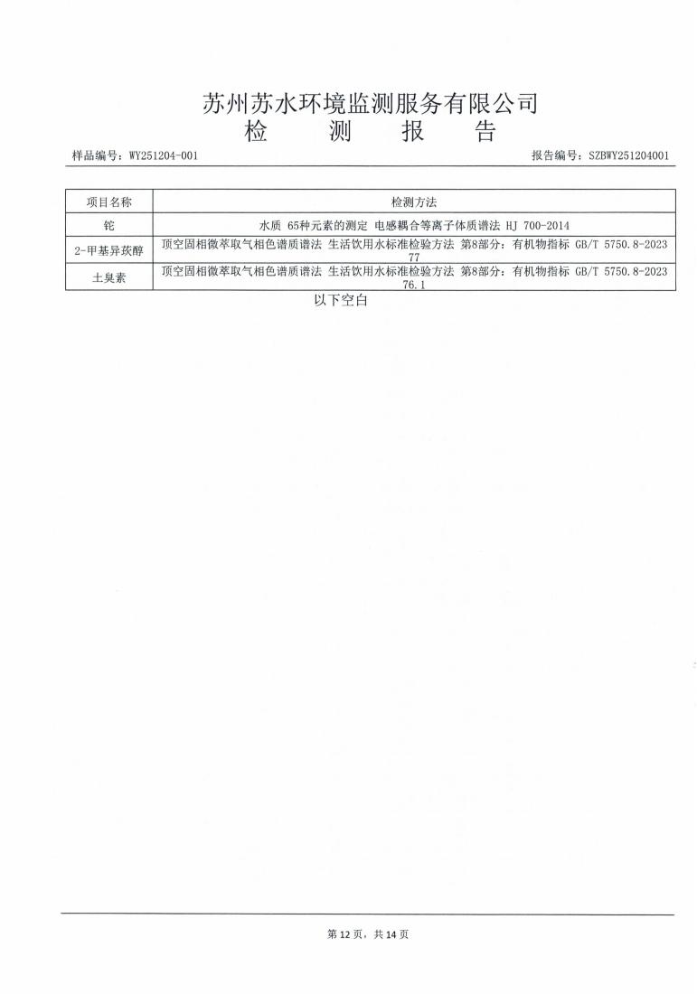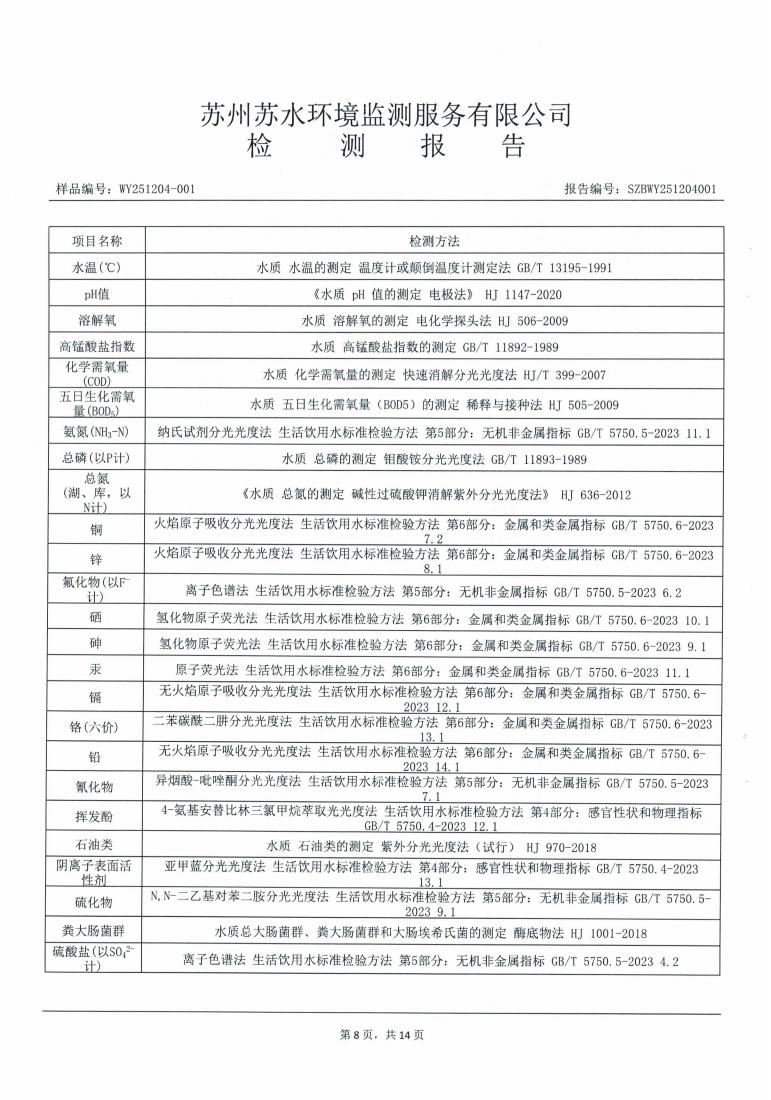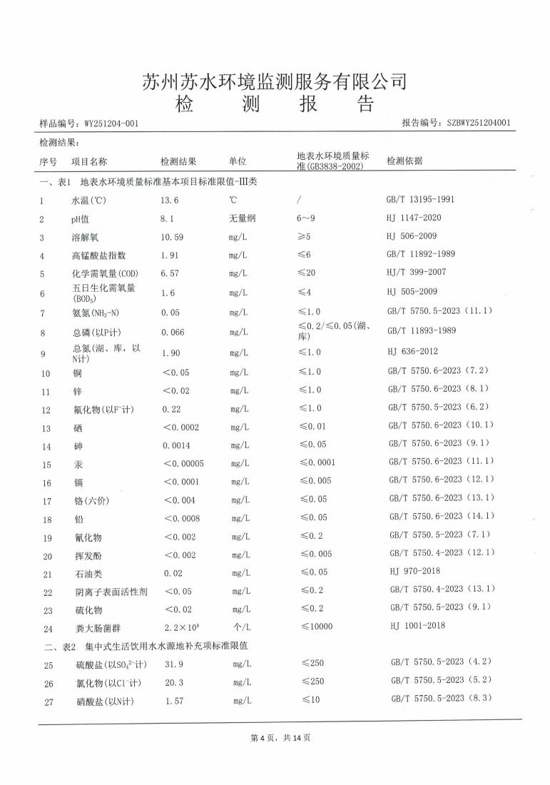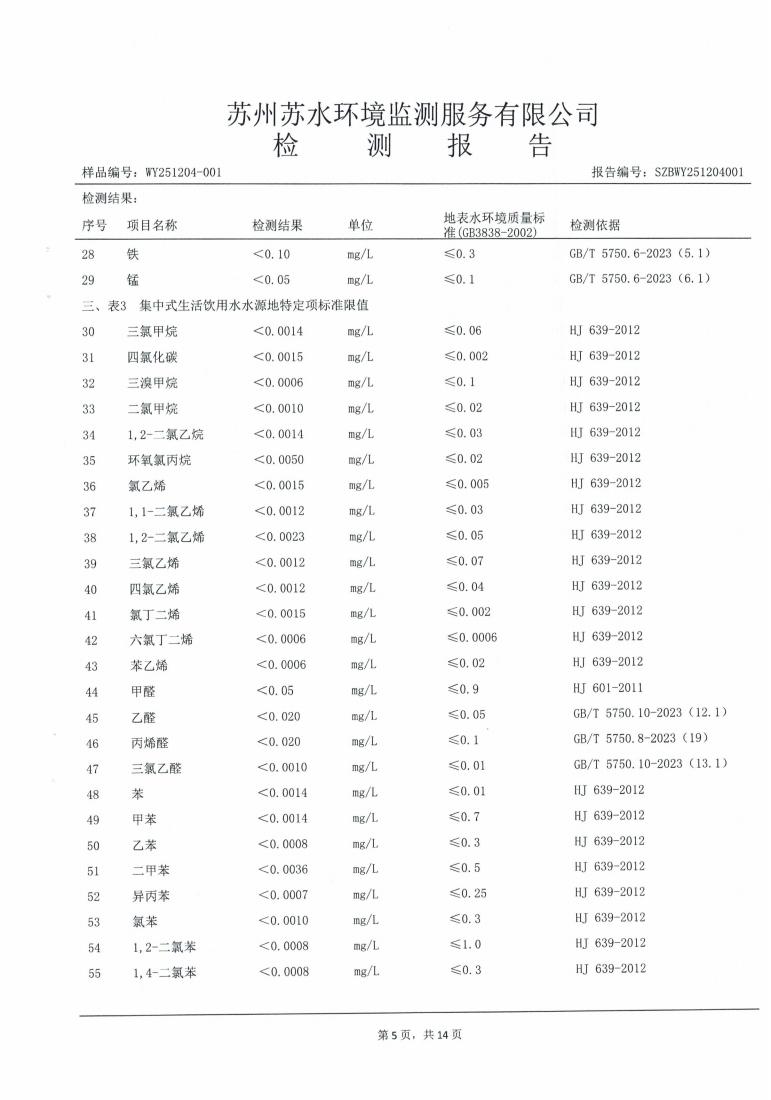 2025年下半年水源水水质报告