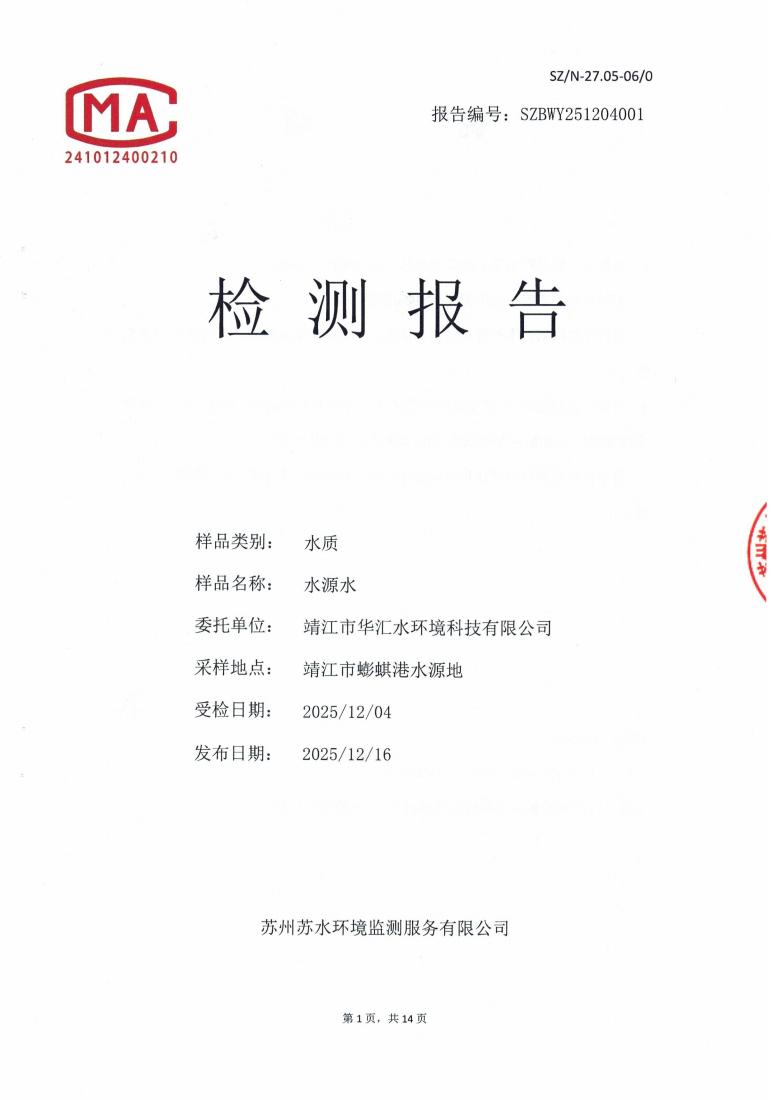 信息来源:华汇水务 ‖ 发稿作者:水质检验部 ‖ 发布时间:2025年12月16日 ‖ 查看105次 ‖