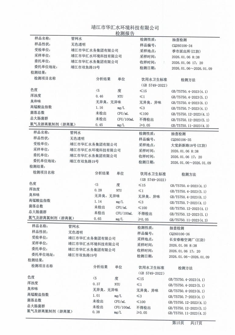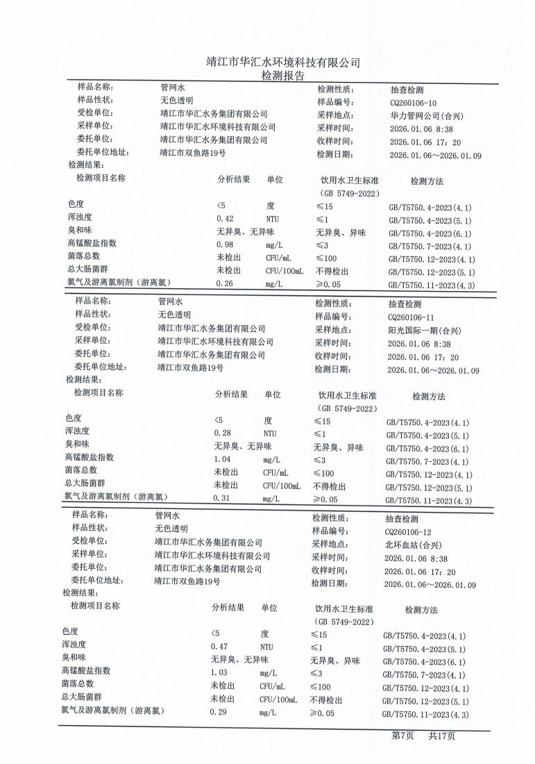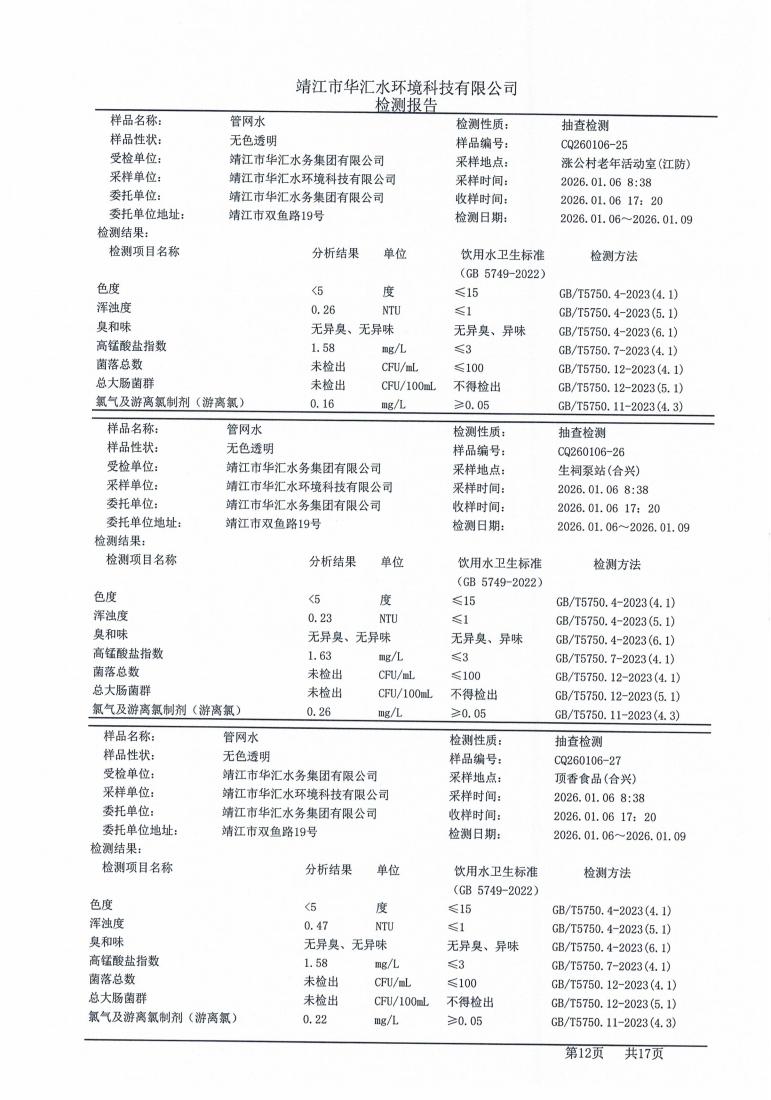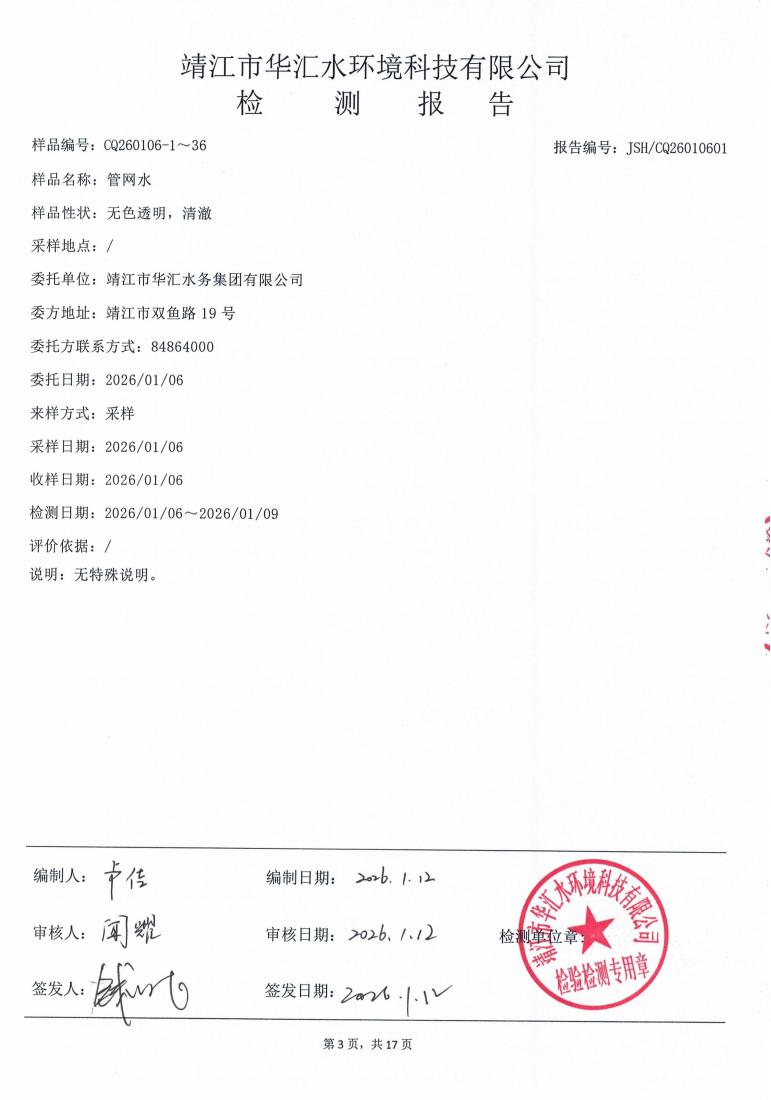 管网水检测报告2026.01.06