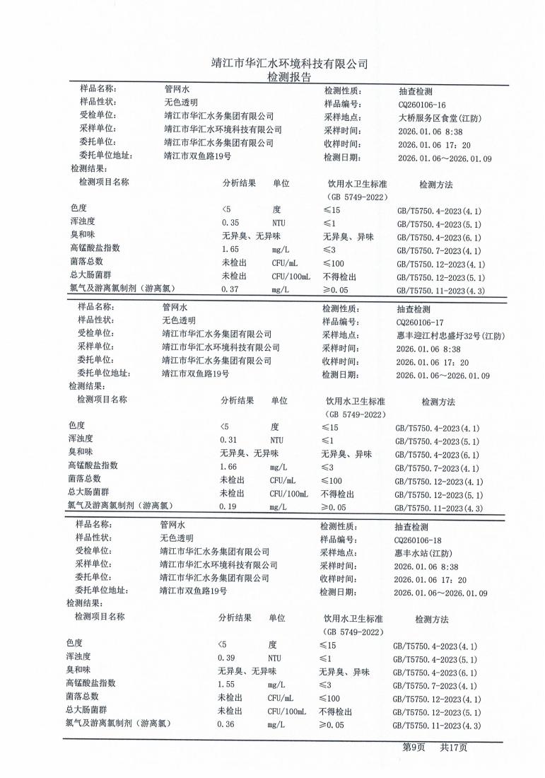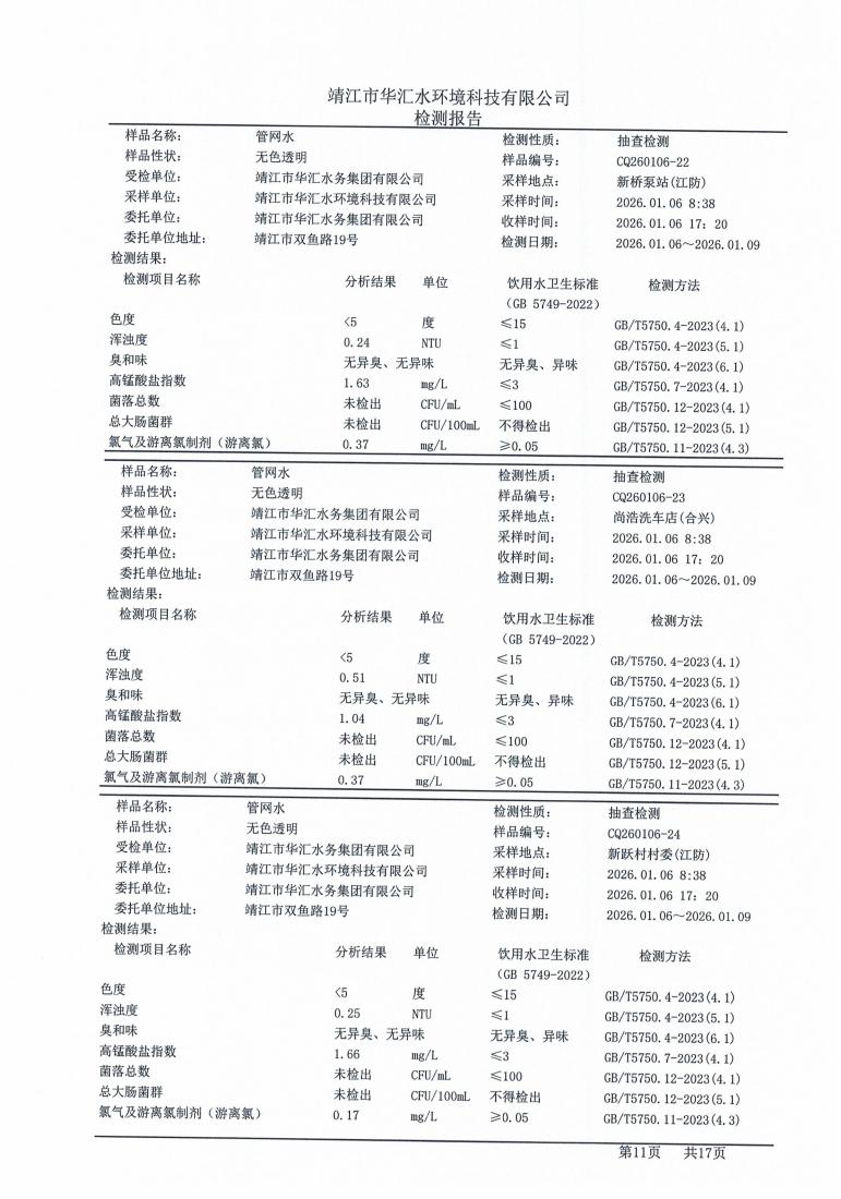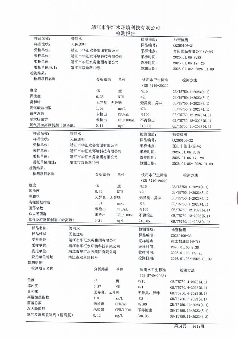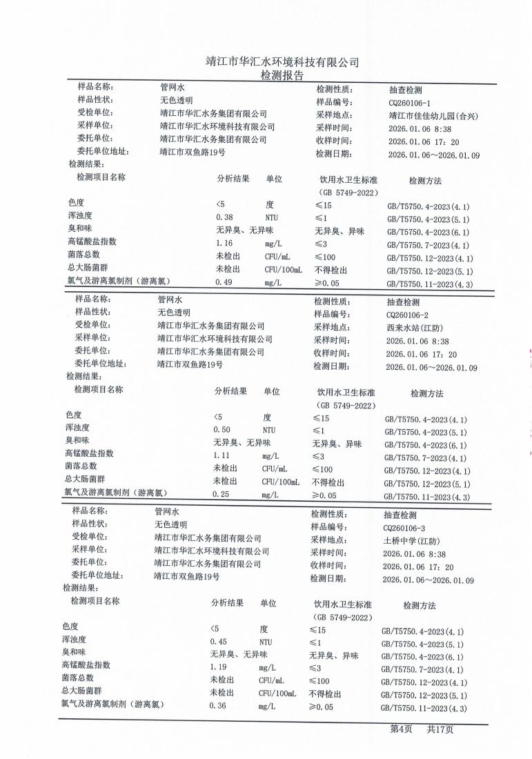 管网水检测报告2026.01.06