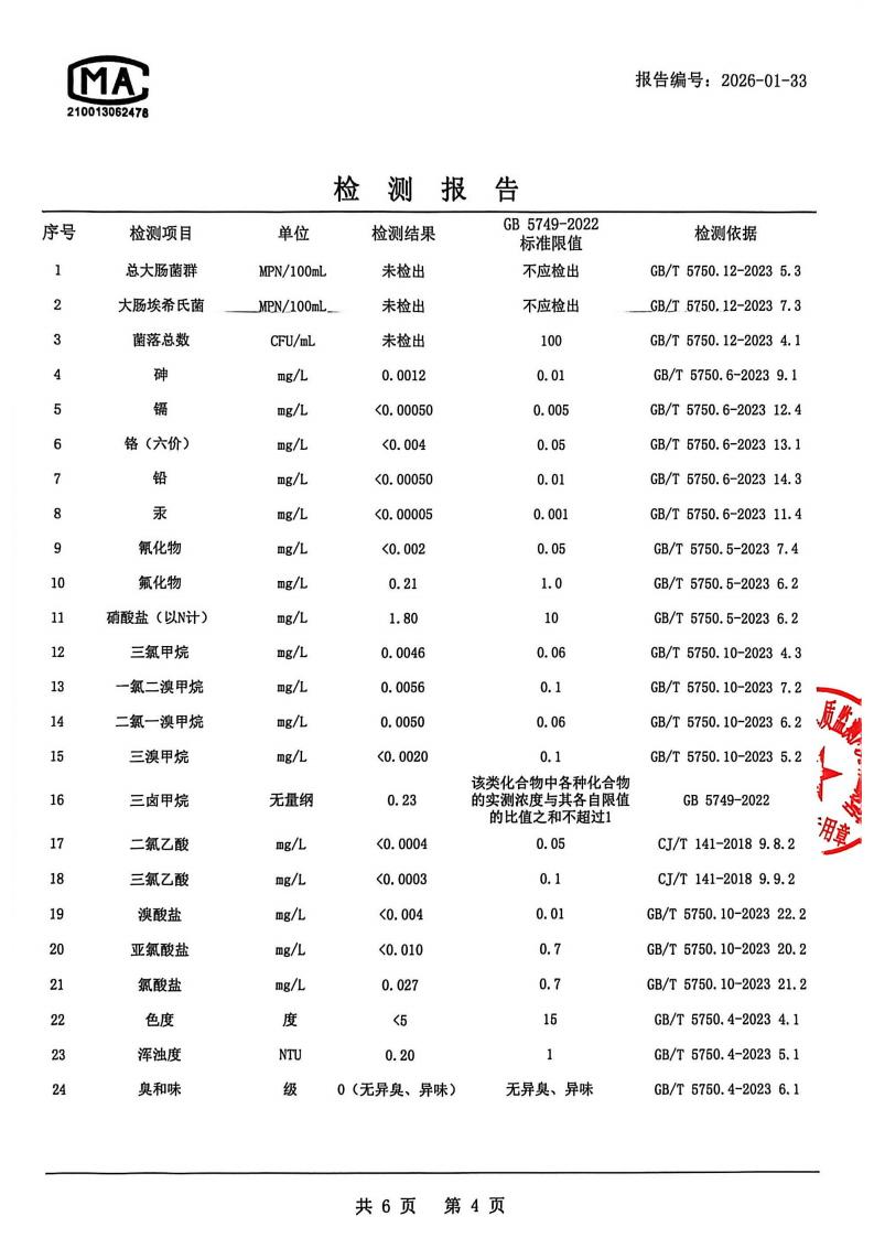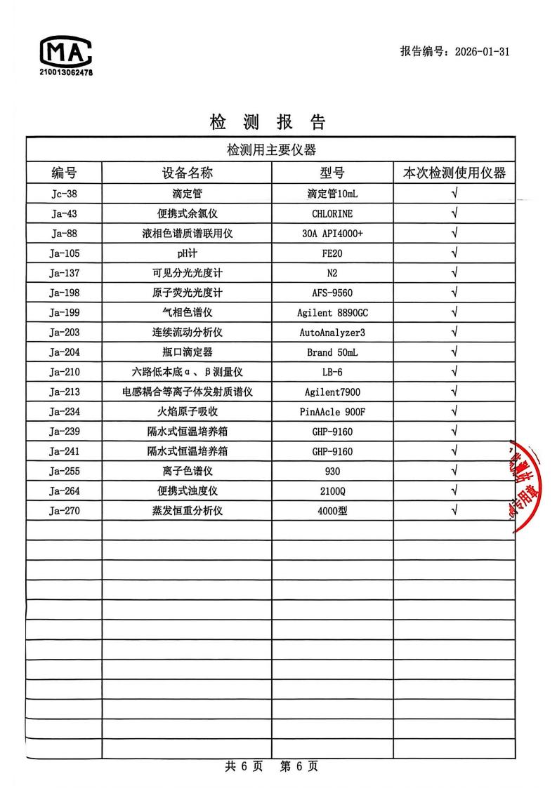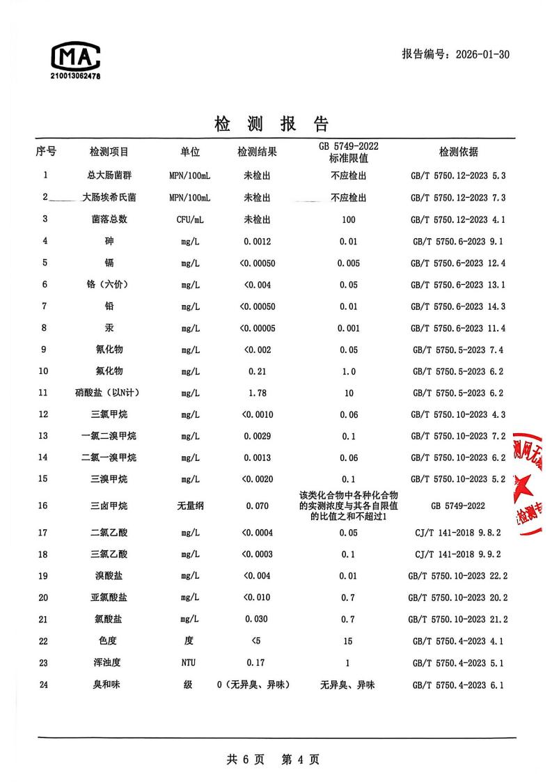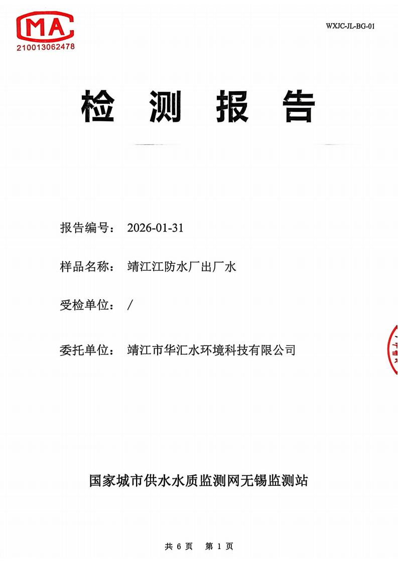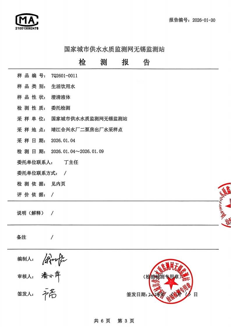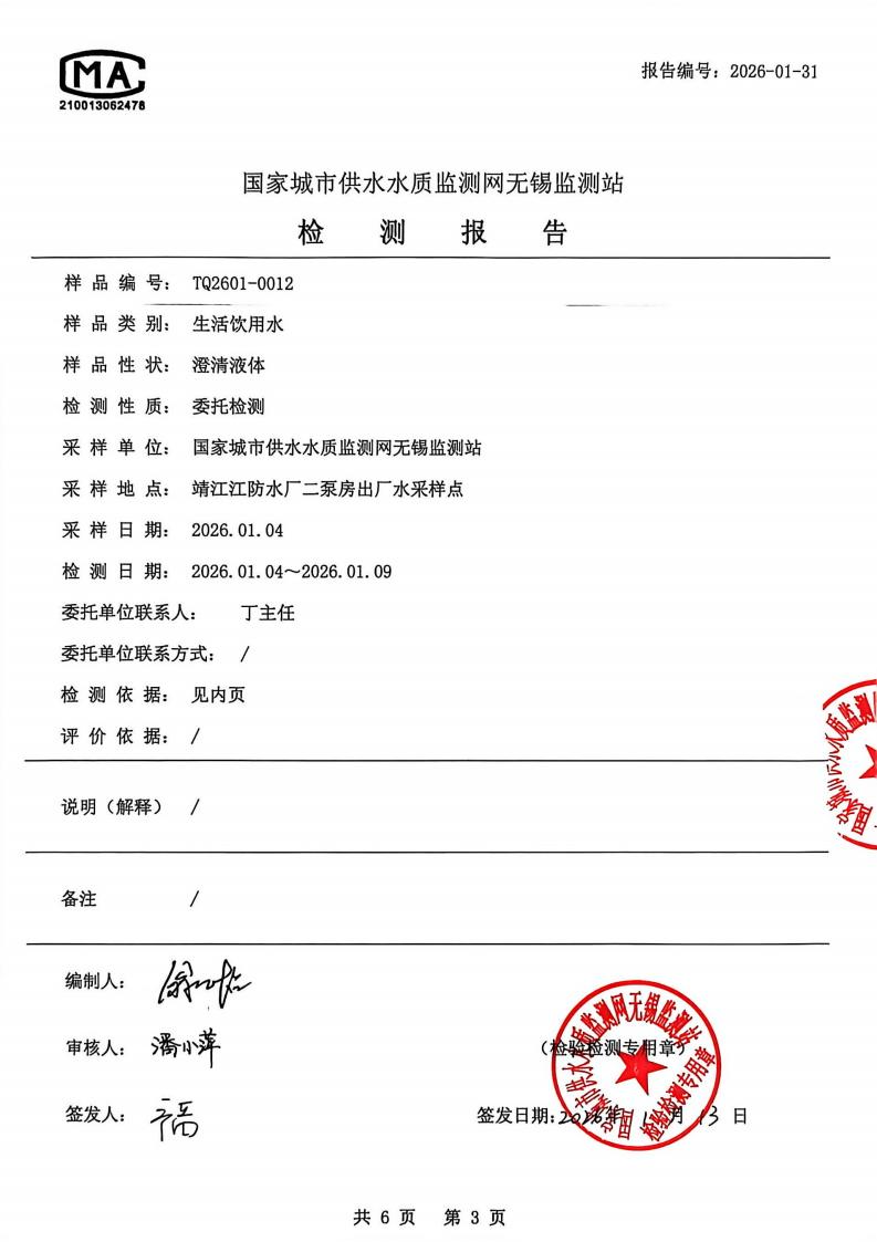 出厂水检测报告2026.1.4