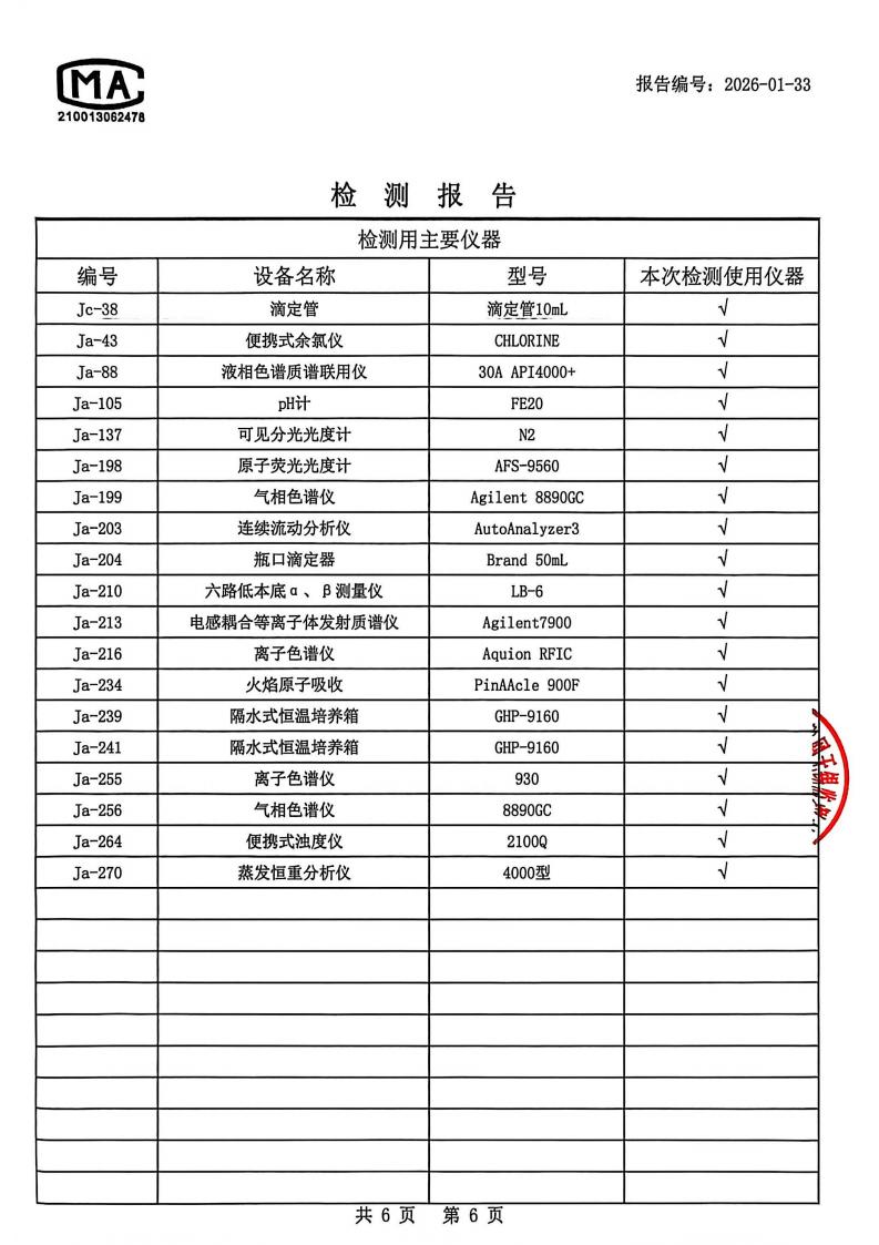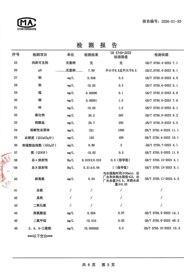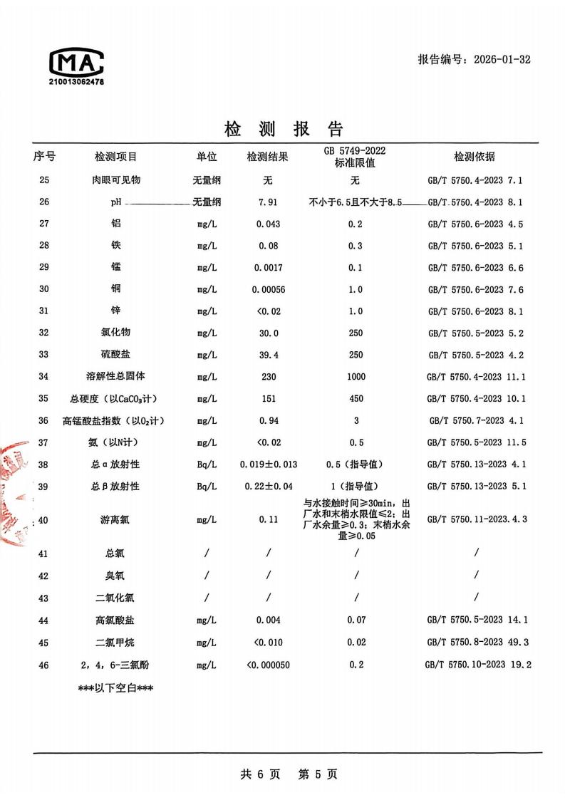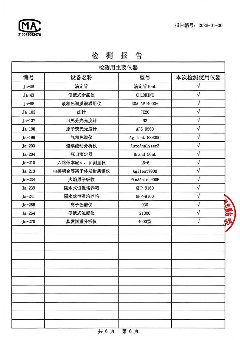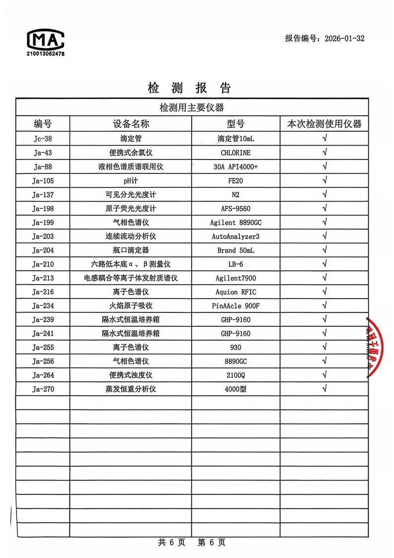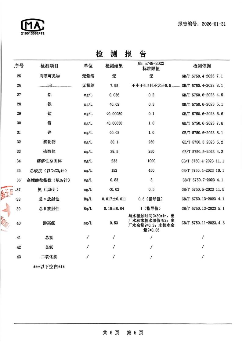 出厂水检测报告2026.1.4