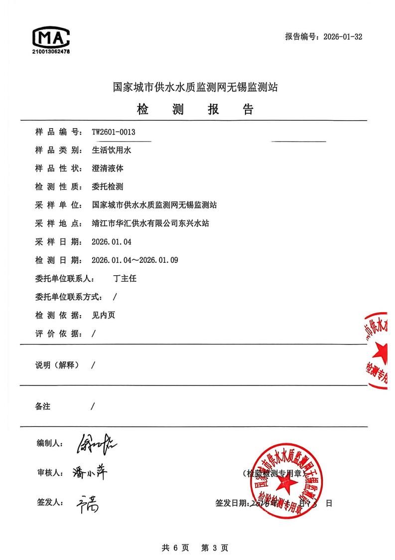 信息来源:华汇水务 ‖ 发稿作者:水质检验部 ‖ 发布时间:2026年1月13日 ‖ 查看51次 ‖