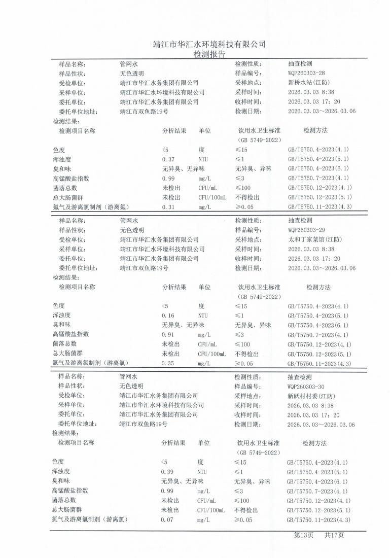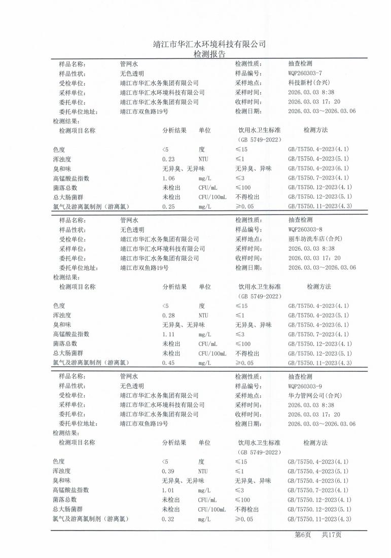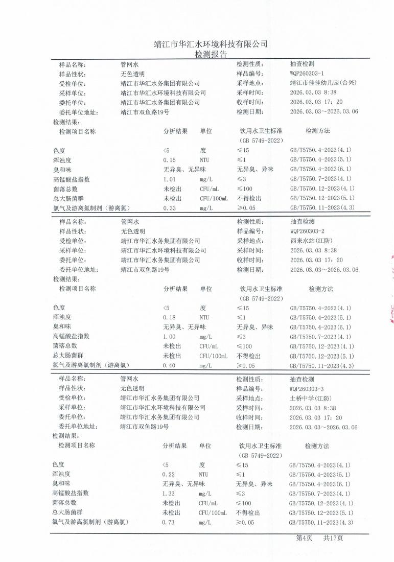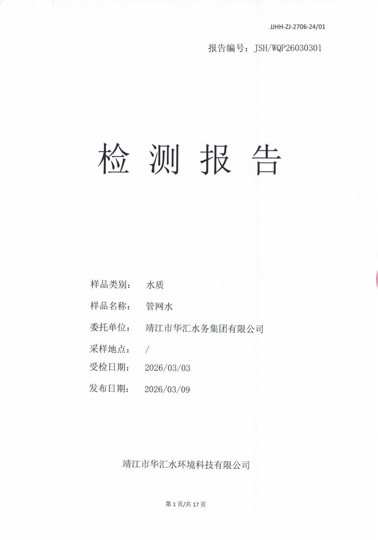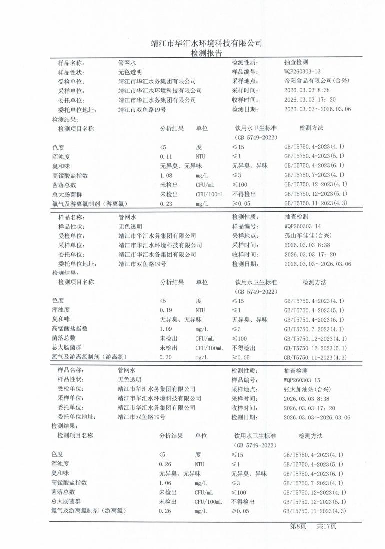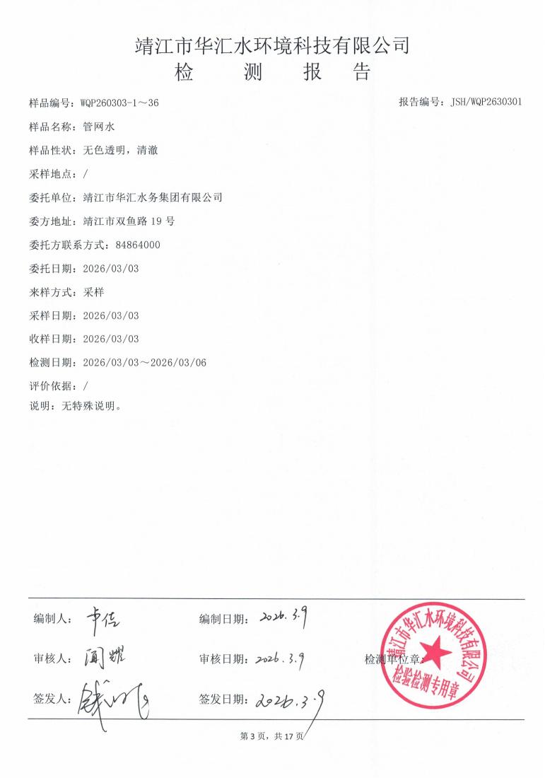 管网水检测报告2026.03.03