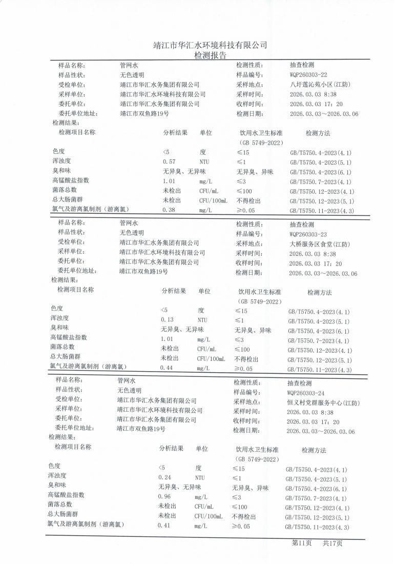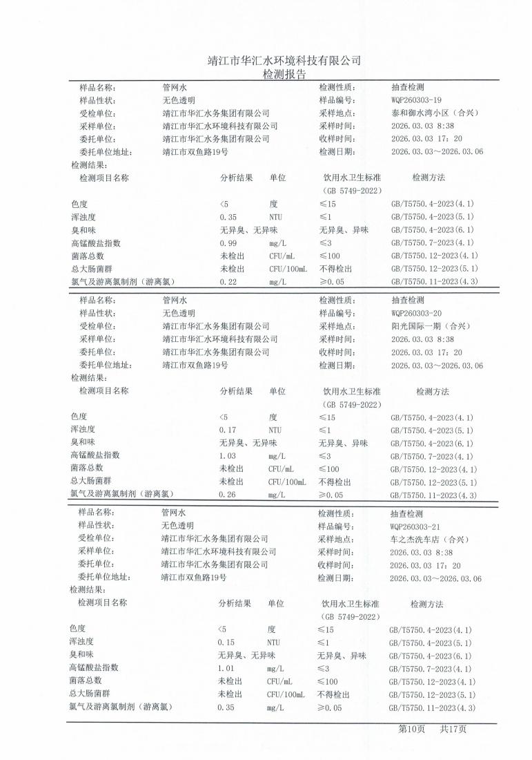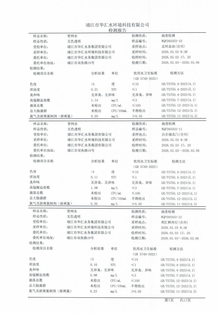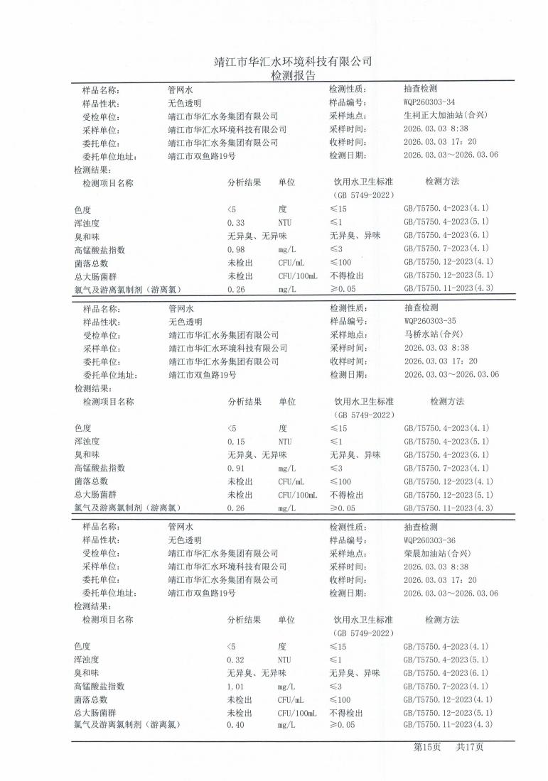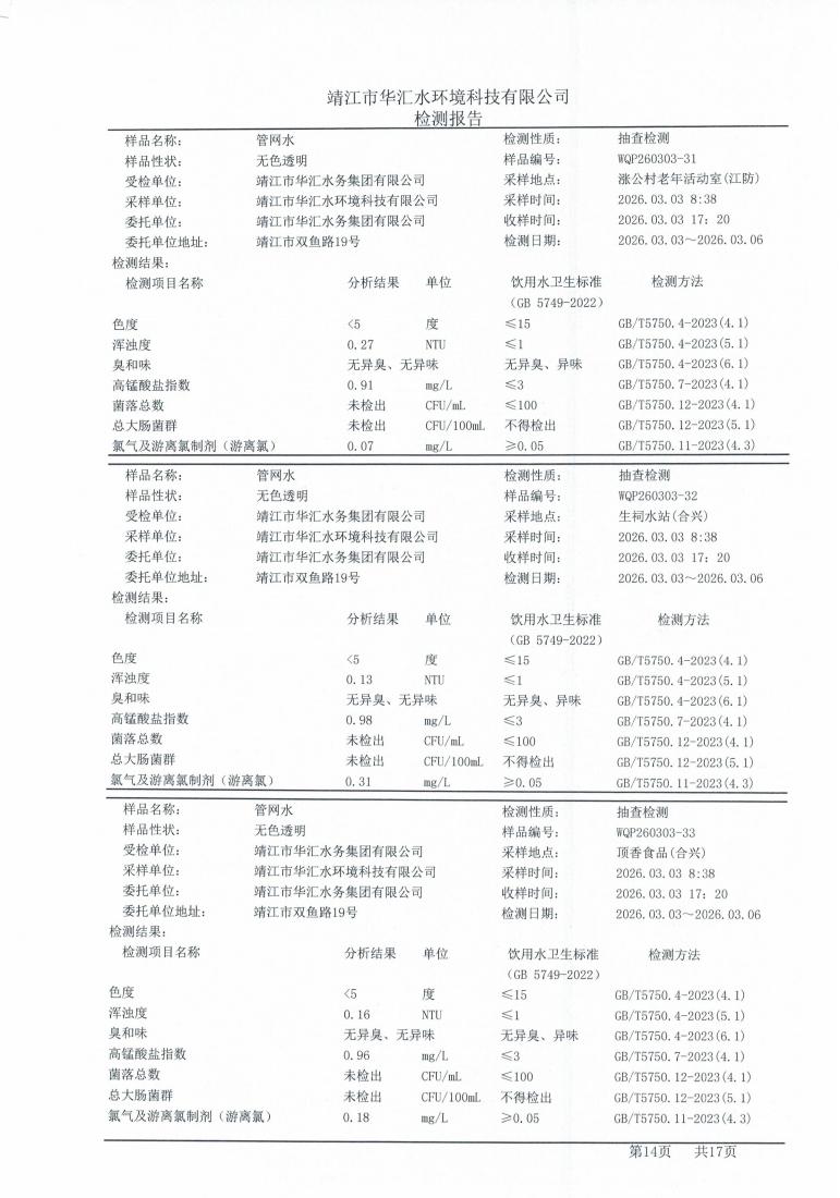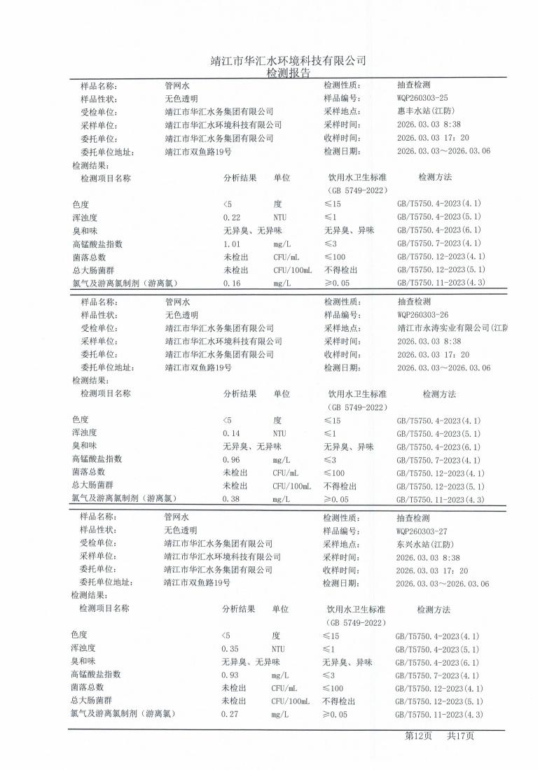 管网水检测报告2026.03.03