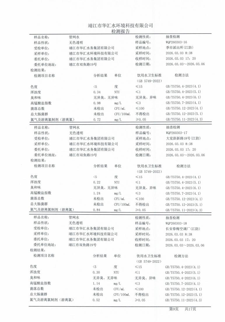 信息来源:华汇水务 ‖ 发稿作者:水质检验部 ‖ 发布时间:2026年3月9日 ‖ 查看9次 ‖