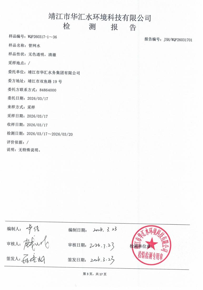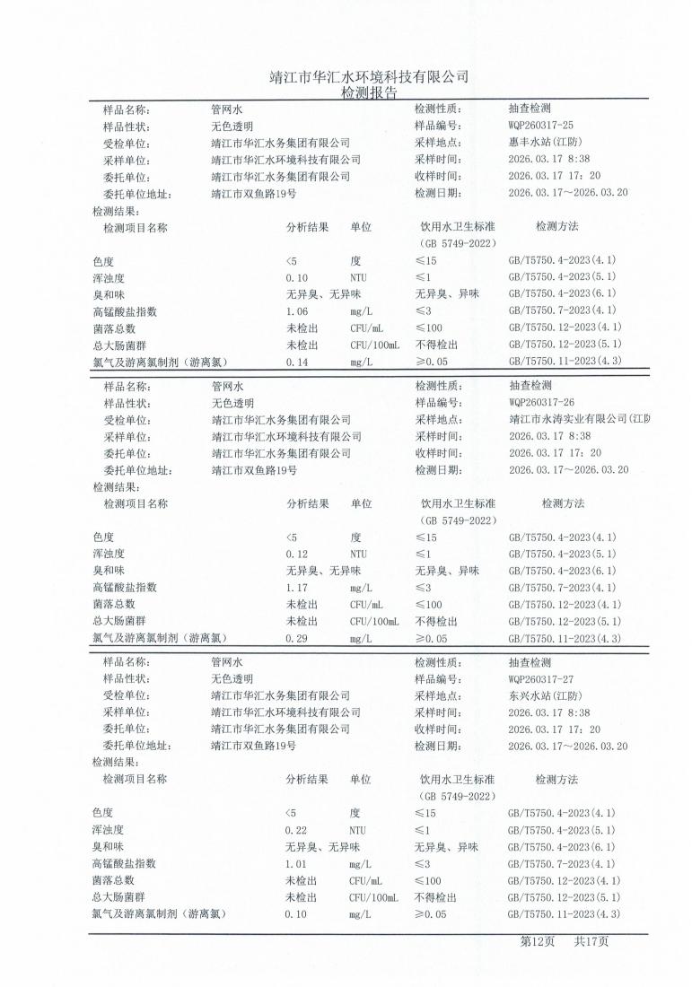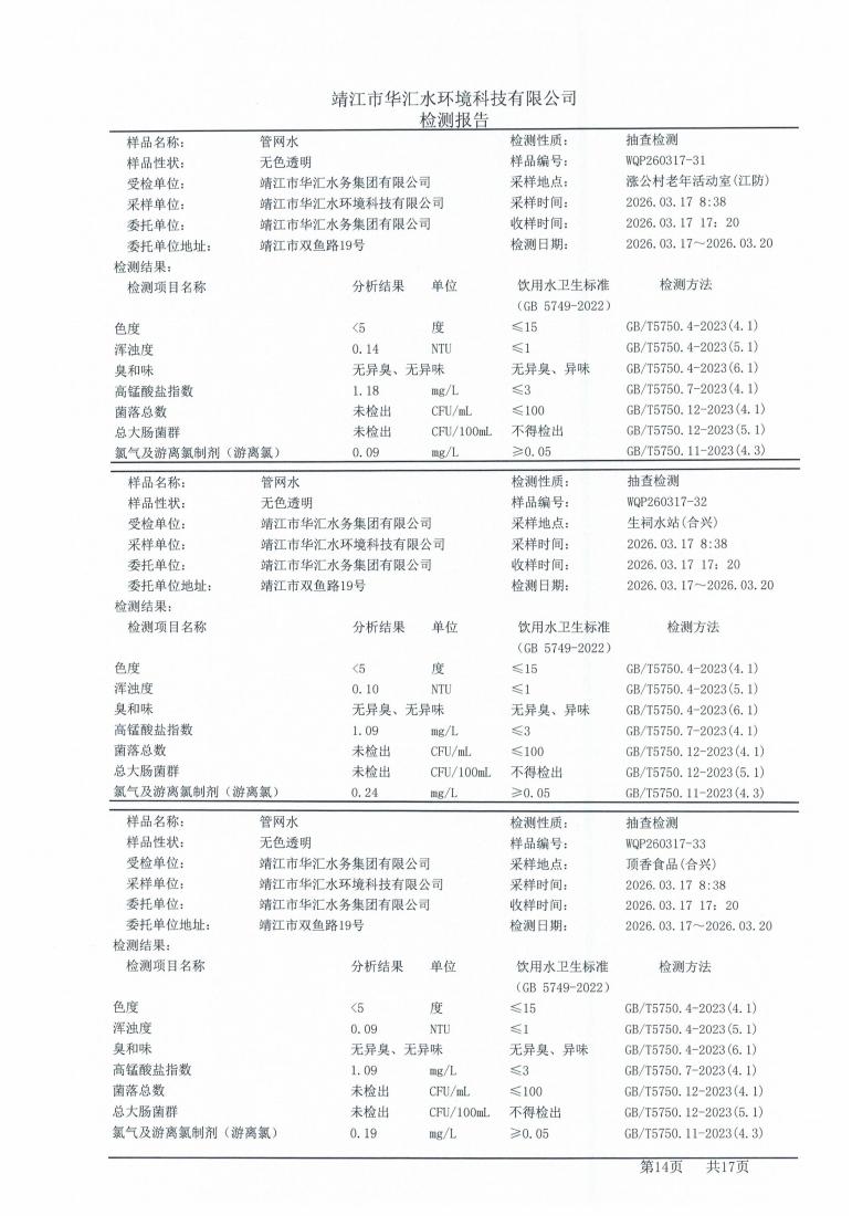 信息来源:华汇水务 ‖ 发稿作者:水质检验部 ‖ 发布时间:2026年3月20日 ‖ 查看56次 ‖