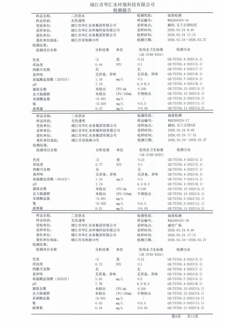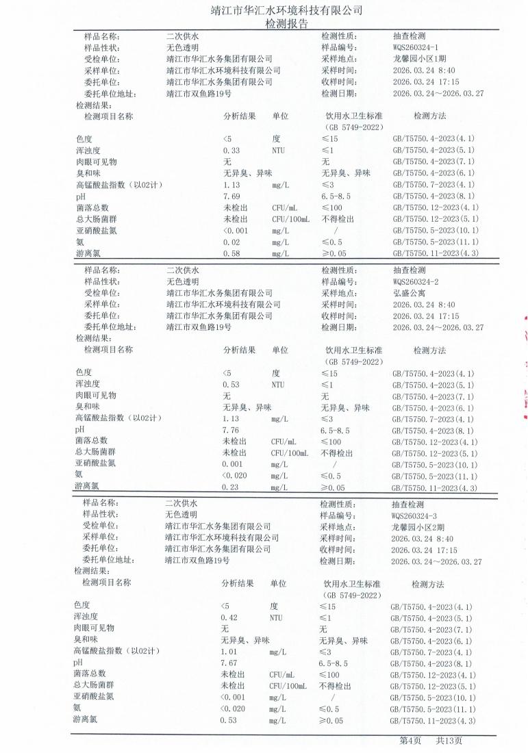信息来源:华汇水务 ‖ 发稿作者:水质检验部 ‖ 发布时间:2026年3月27日 ‖ 查看78次 ‖