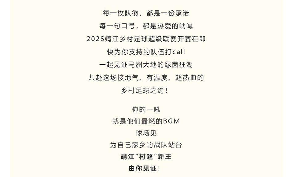 集结!亮徽!喊话!2026靖江“村超”19强战魂已燃!
