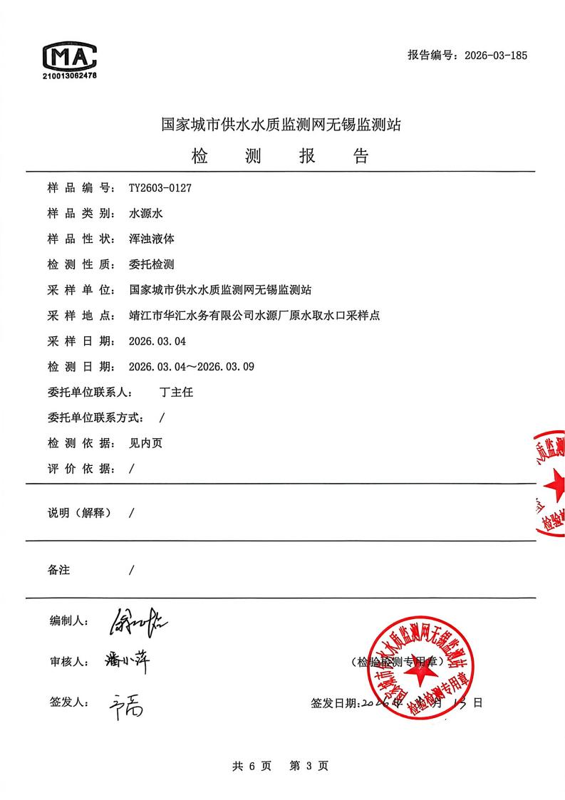 信息来源:华汇水务 ‖ 发稿作者:水质检验部 ‖ 发布时间:2026年3月20日 ‖ 查看17次 ‖