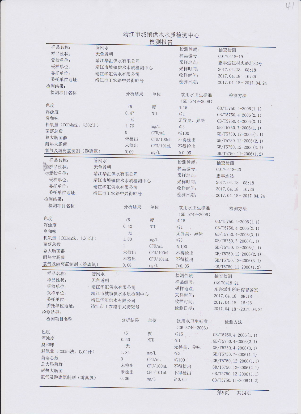 信息来源:华汇供水 ‖ 发稿作者:水质检验部 ‖ 发布时间:2017年8月18日 ‖ 查看3838次 ‖