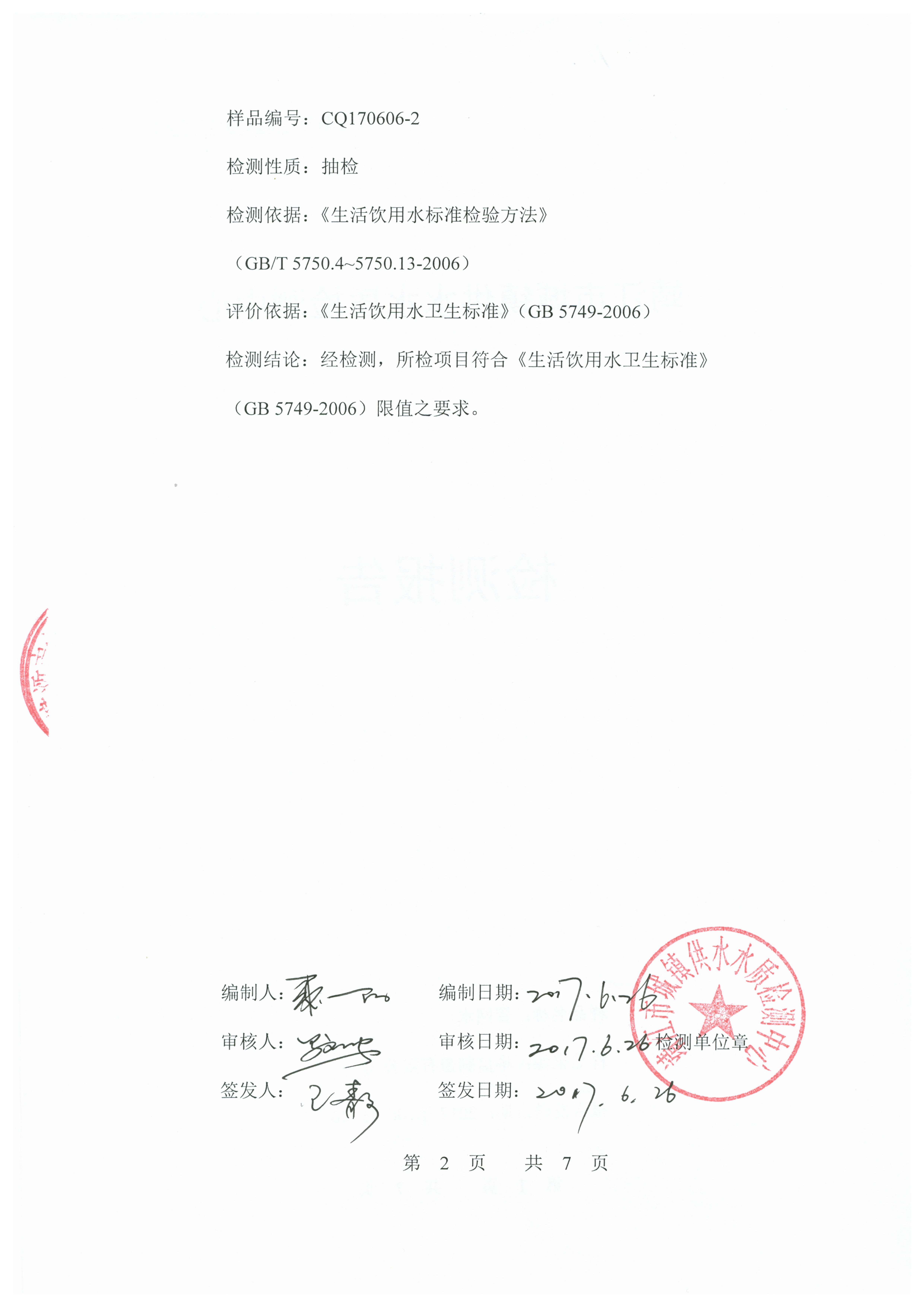 出厂水检测报告2017.06.06