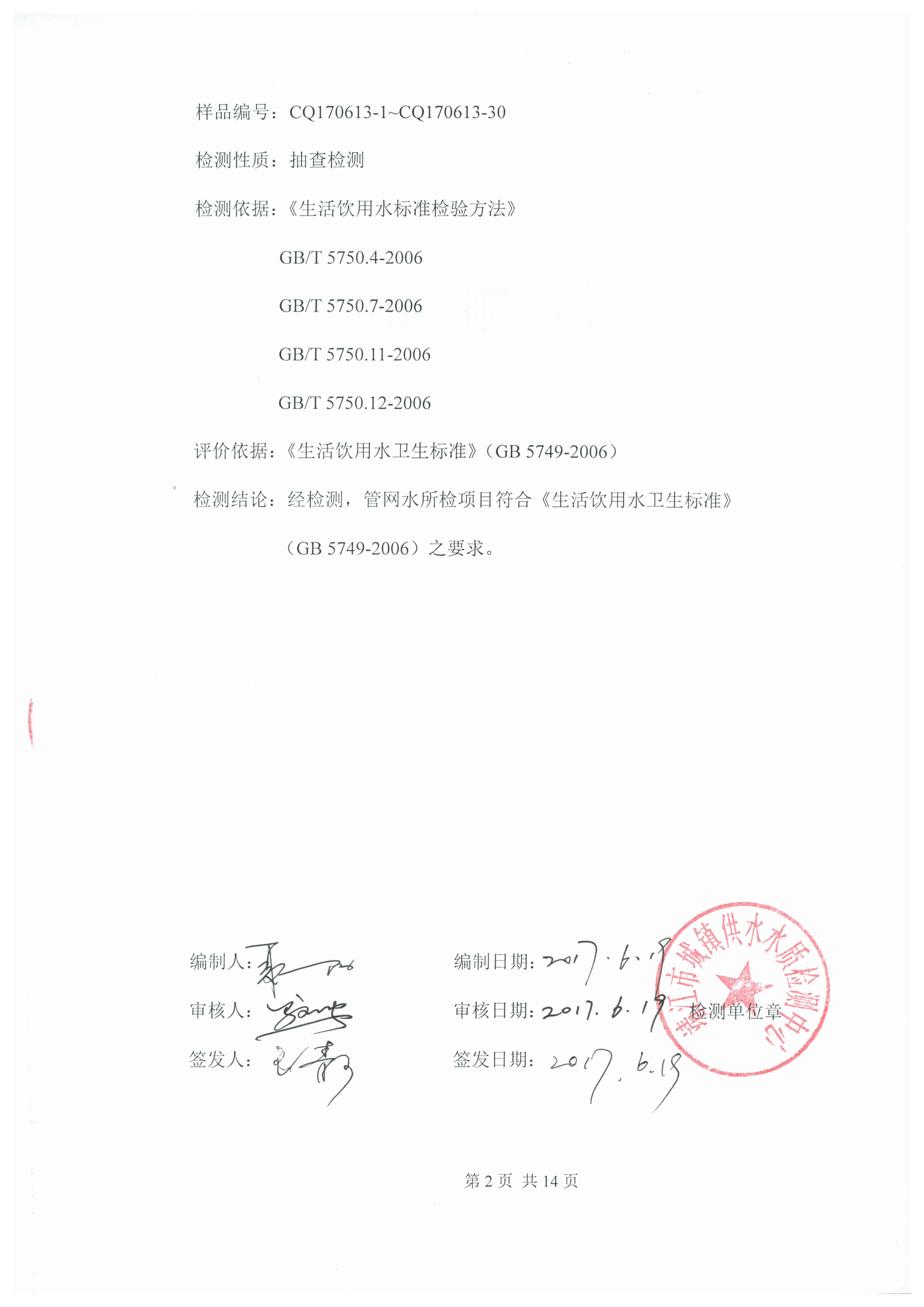 信息来源:华汇供水 ‖ 发稿作者:水质检验部 ‖ 发布时间:2017年8月22日 ‖ 查看3640次 ‖