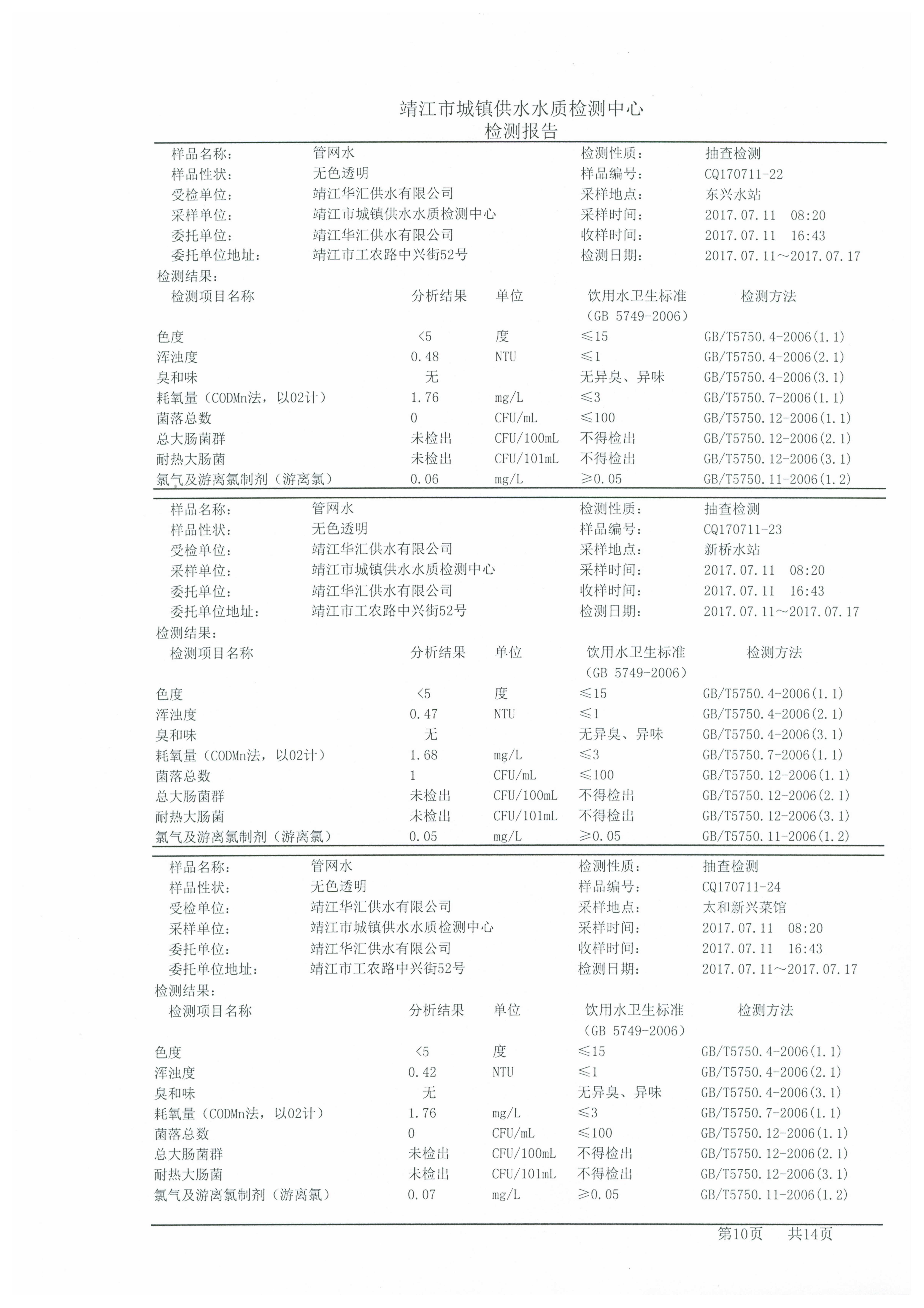 信息来源:华汇供水 ‖ 发稿作者:水质检验部 ‖ 发布时间:2017年8月22日 ‖ 查看3754次 ‖