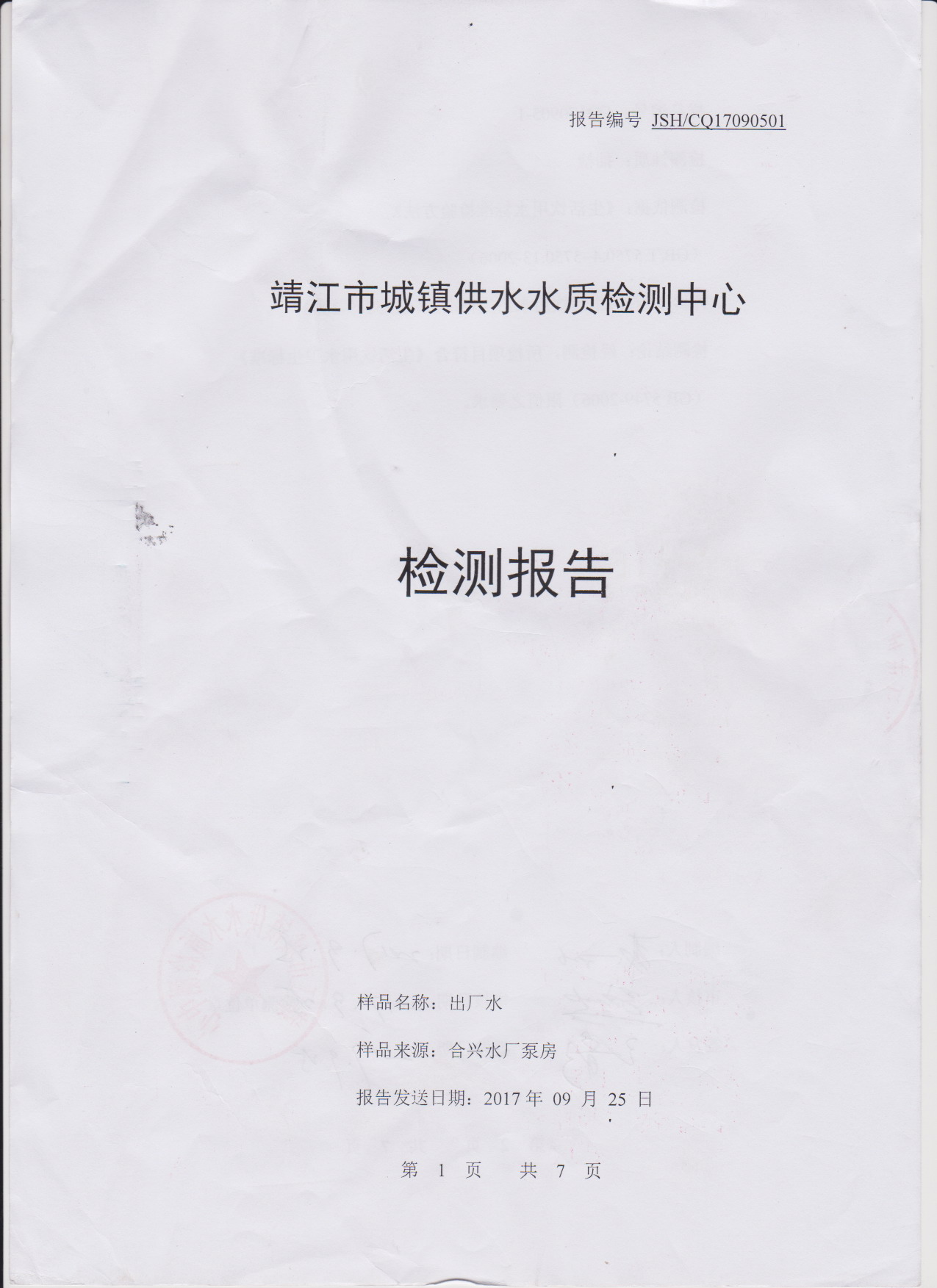 出厂水检测报告2017.09.05