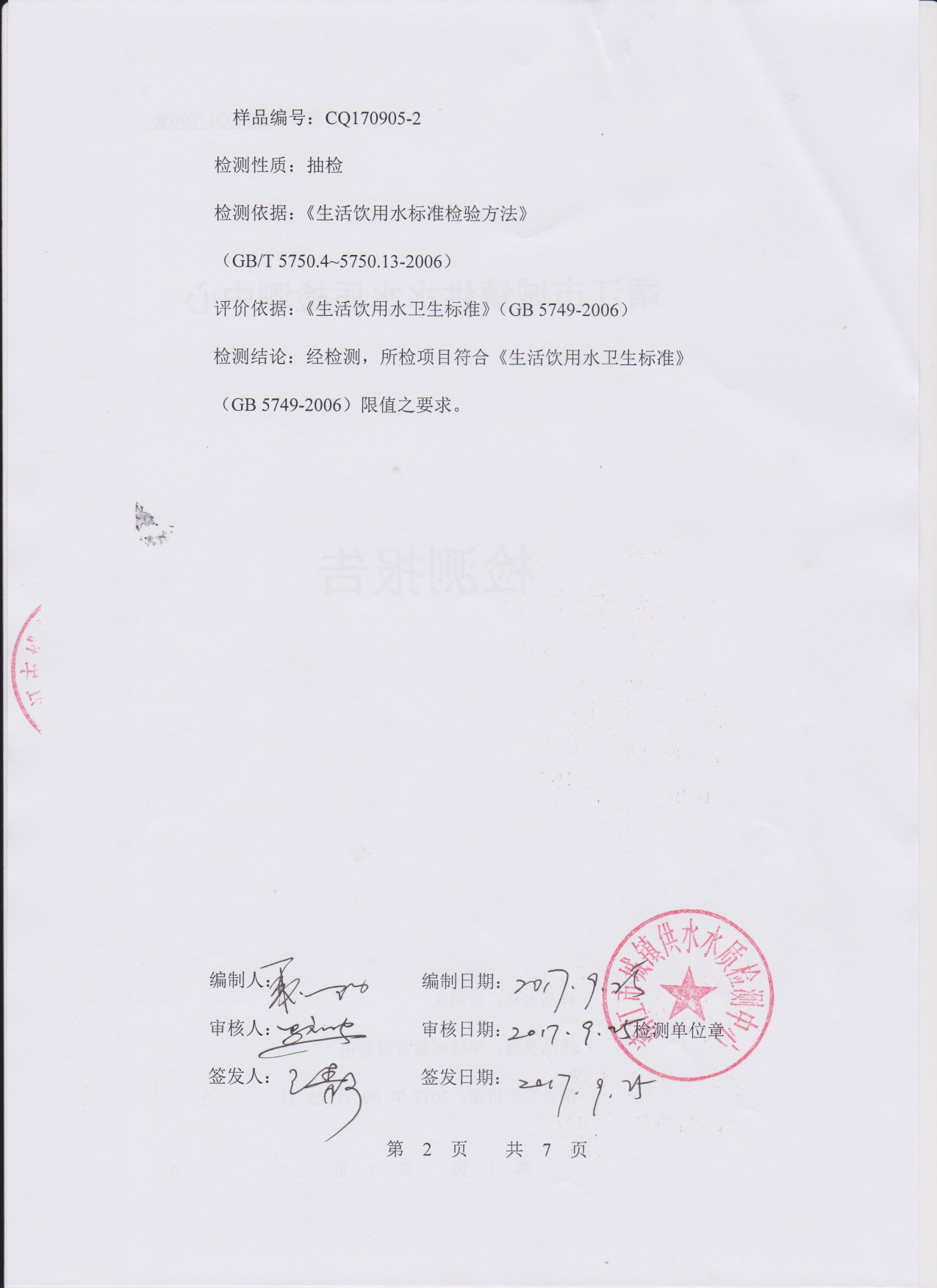 出厂水检测报告2017.09.05