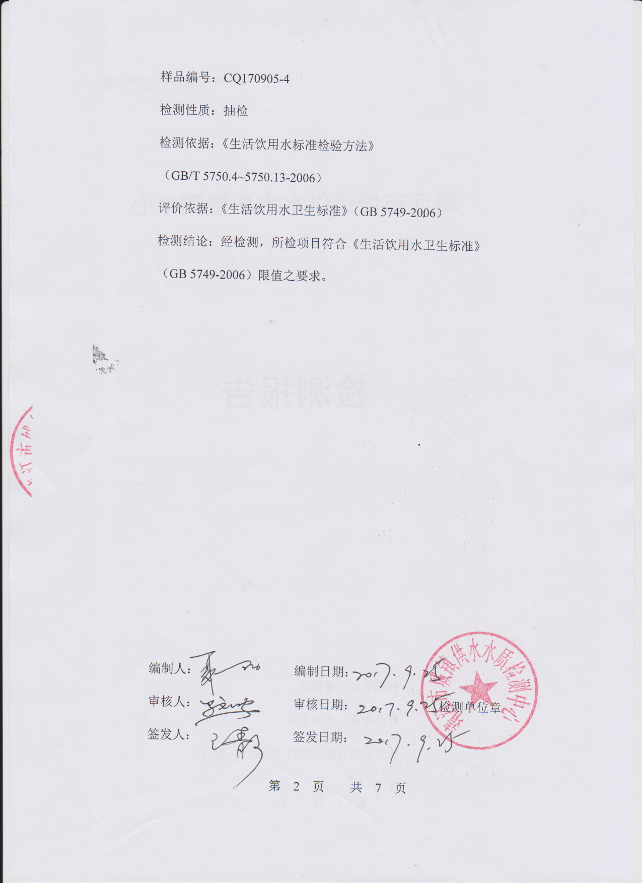 出厂水检测报告2017.09.05