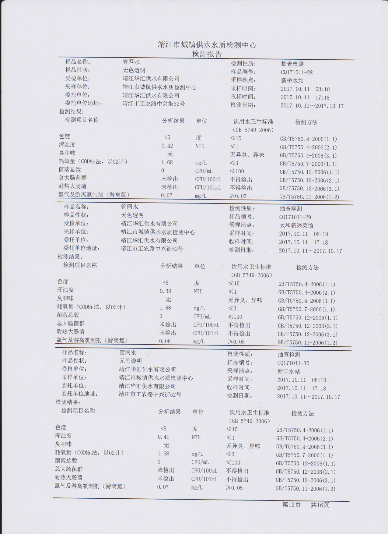 信息来源:华汇供水 ‖ 发稿作者:水质检验部 ‖ 发布时间:2018年1月2日 ‖ 查看2376次 ‖