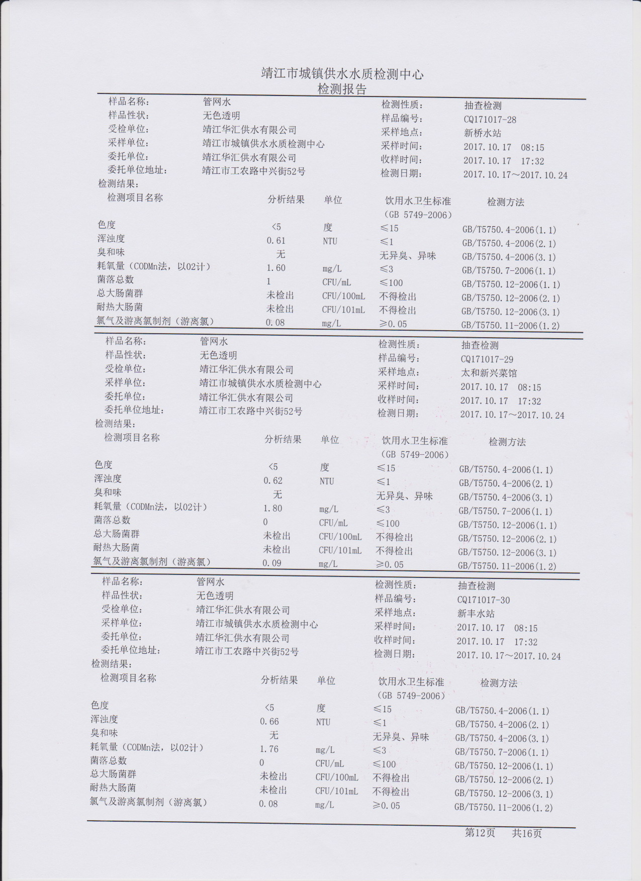 管网水质检测报告2017.10.17