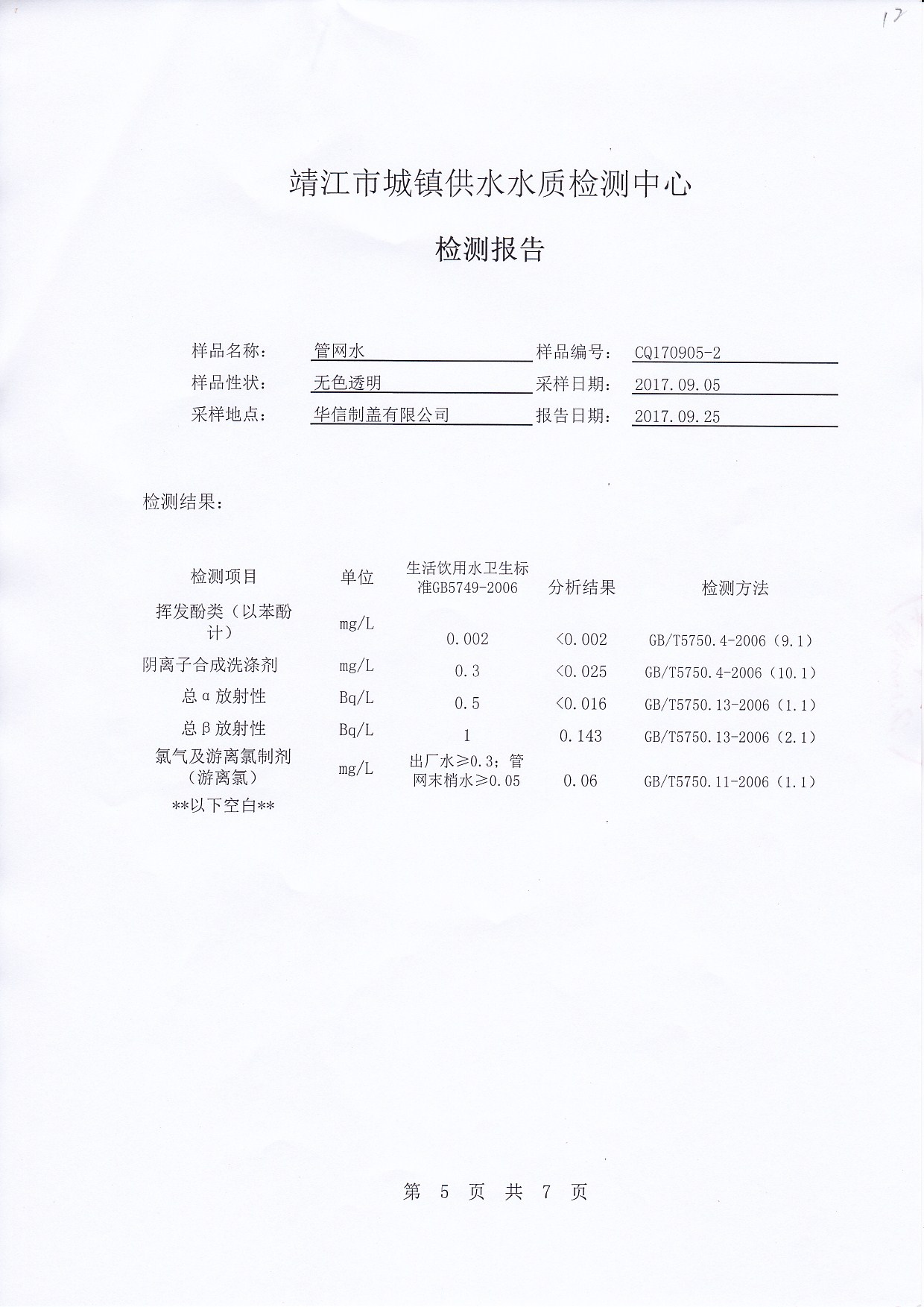 出厂水检测报告2017.09.05