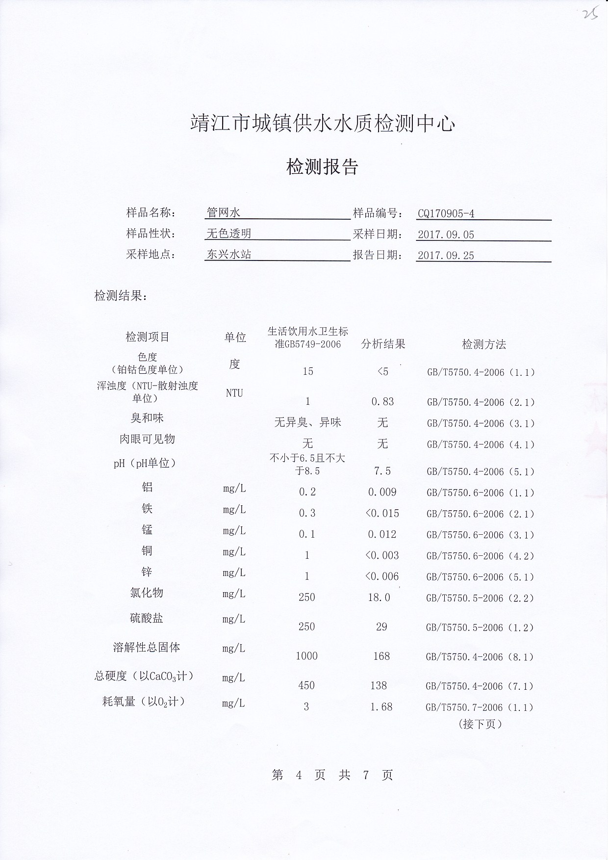 出厂水检测报告2017.09.05