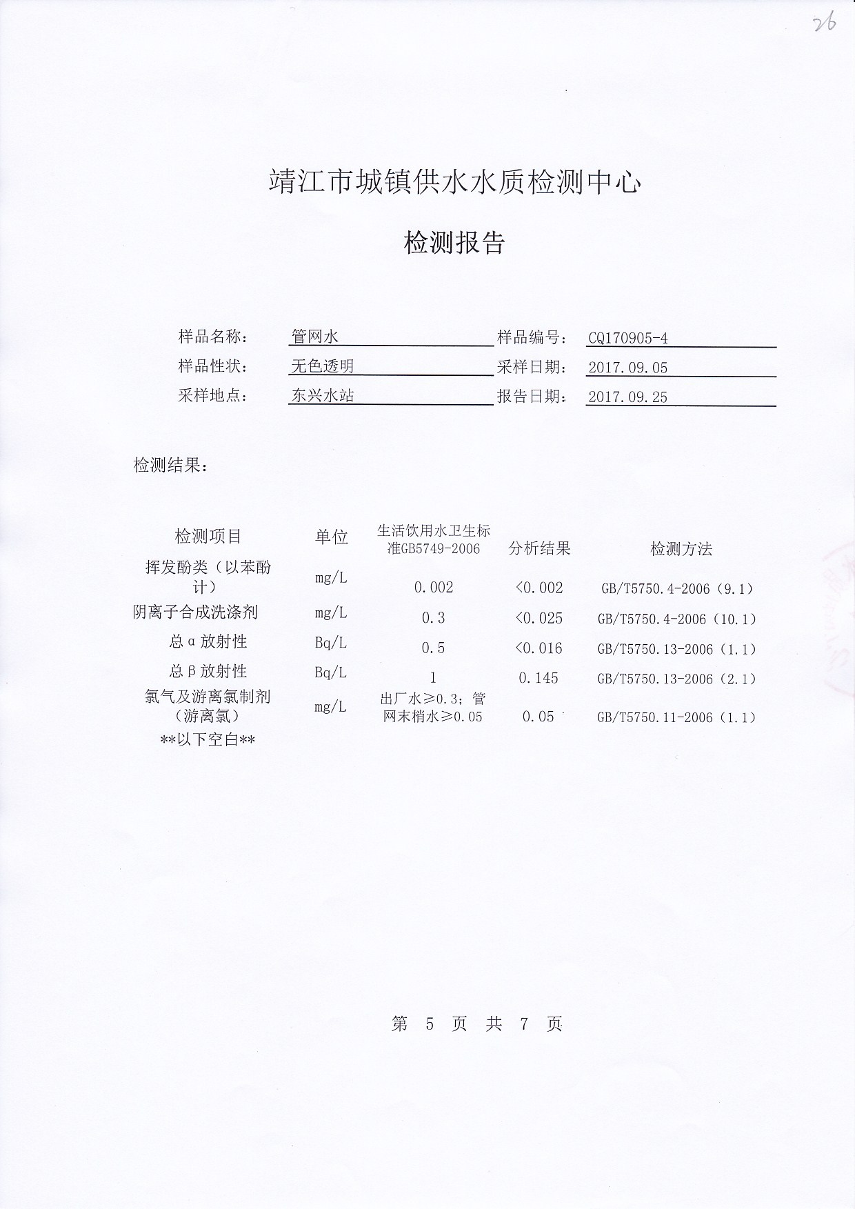 出厂水检测报告2017.09.05