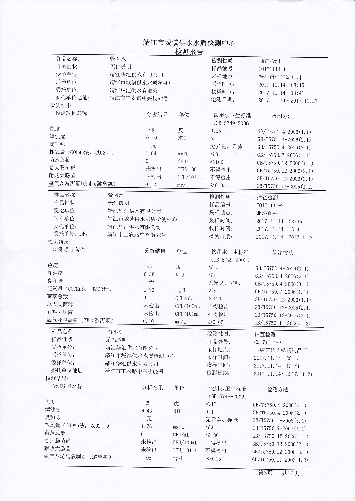 信息来源:华汇供水 ‖ 发稿作者:水质检验部 ‖ 发布时间:2018年1月24日 ‖ 查看2426次 ‖