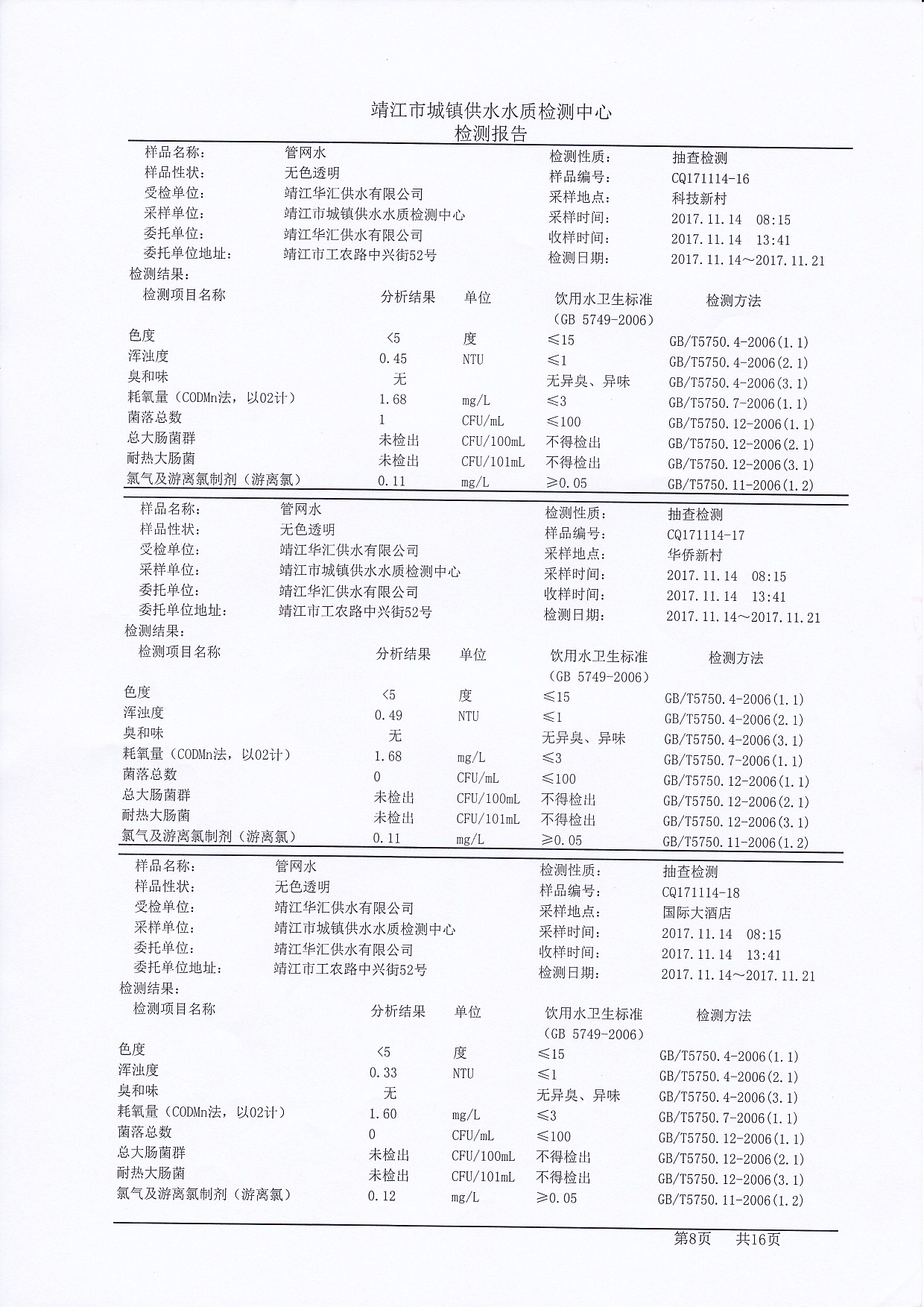 管网水检测报告2017.11.14