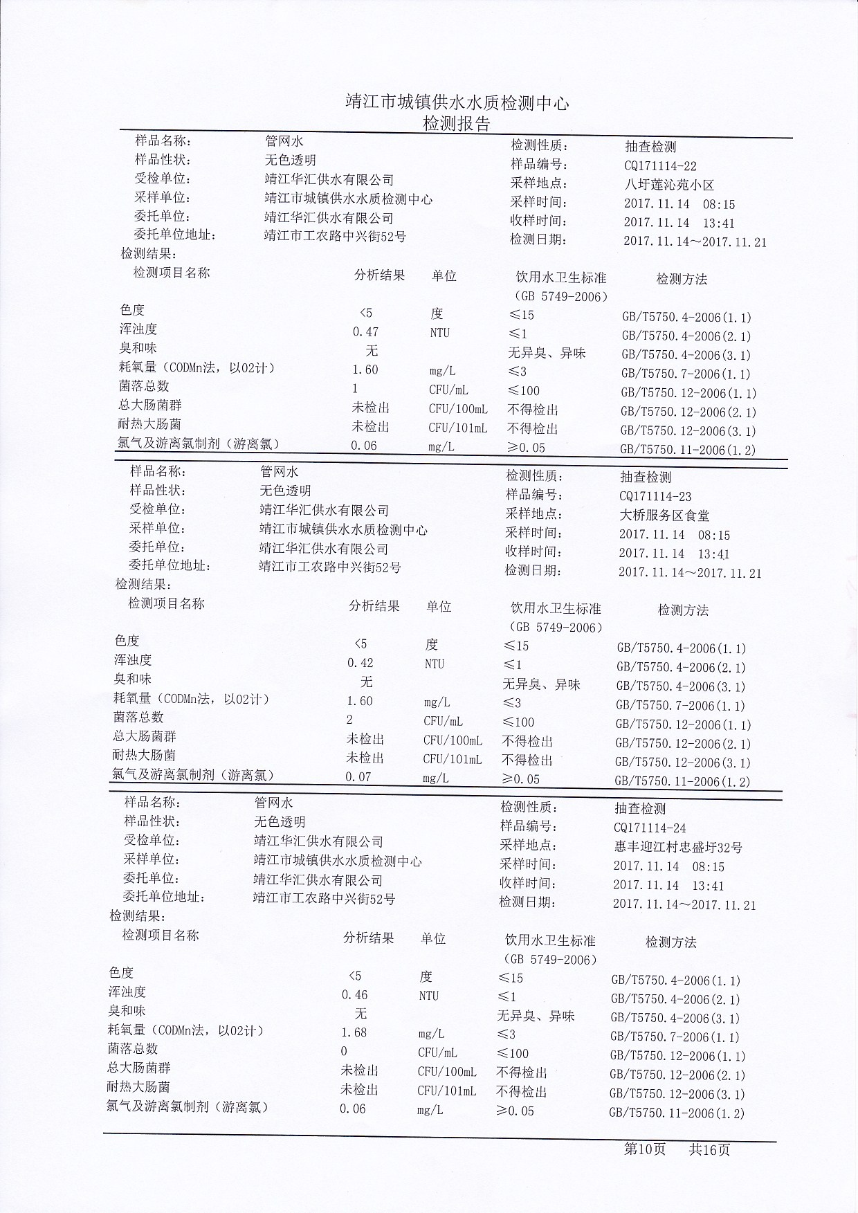 信息来源:华汇供水 ‖ 发稿作者:水质检验部 ‖ 发布时间:2018年1月24日 ‖ 查看2484次 ‖