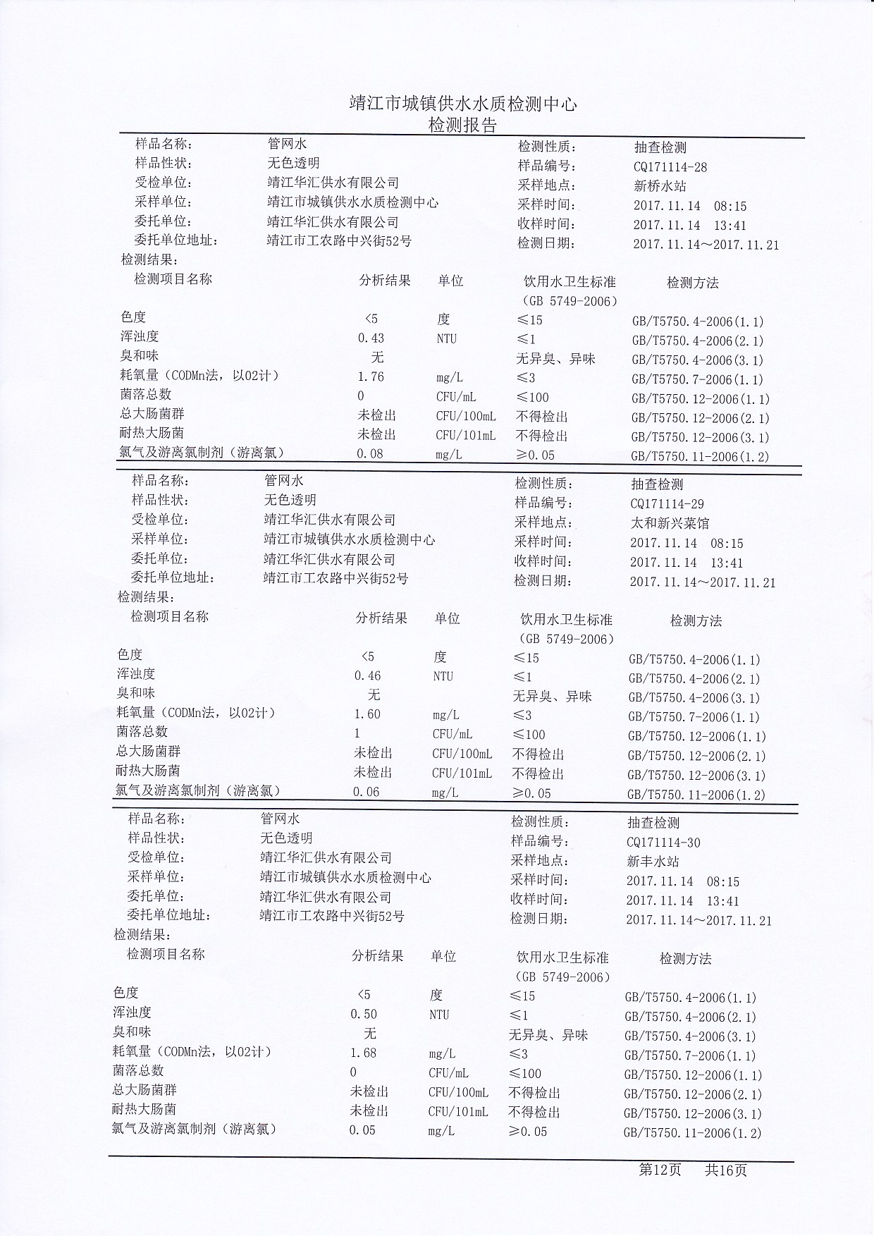 信息来源:华汇供水 ‖ 发稿作者:水质检验部 ‖ 发布时间:2018年1月24日 ‖ 查看2349次 ‖