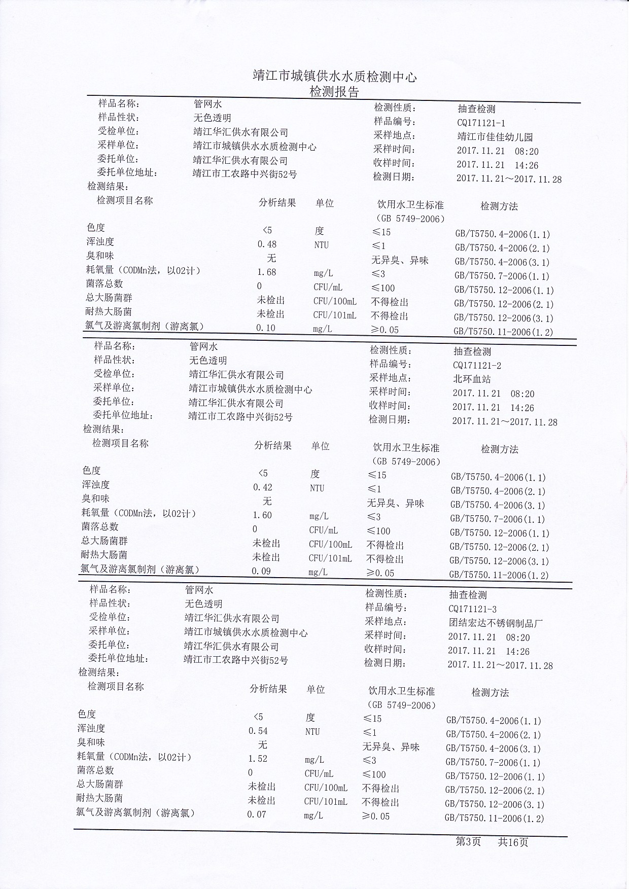 信息来源:华汇供水 ‖ 发稿作者:水质检验部 ‖ 发布时间:2018年1月24日 ‖ 查看2512次 ‖