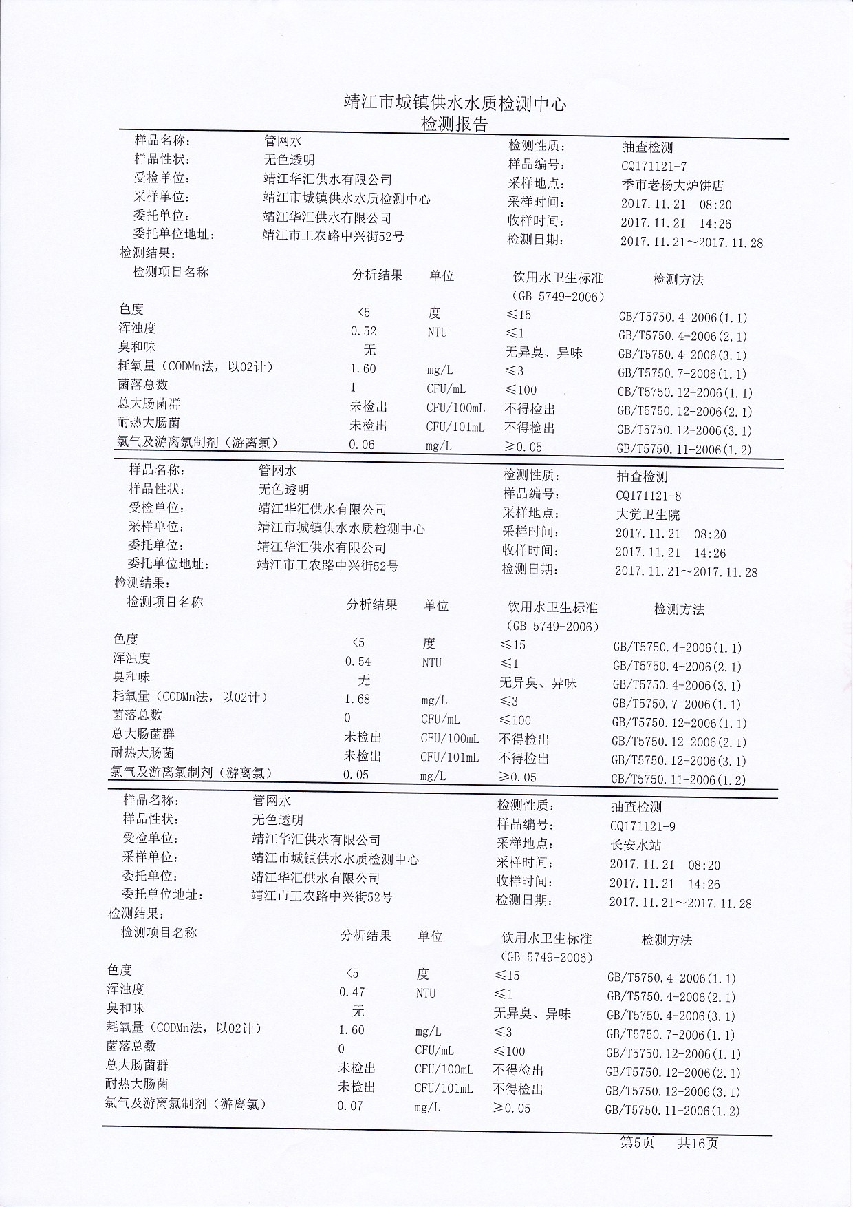 信息来源:华汇供水 ‖ 发稿作者:水质检验部 ‖ 发布时间:2018年1月24日 ‖ 查看2526次 ‖