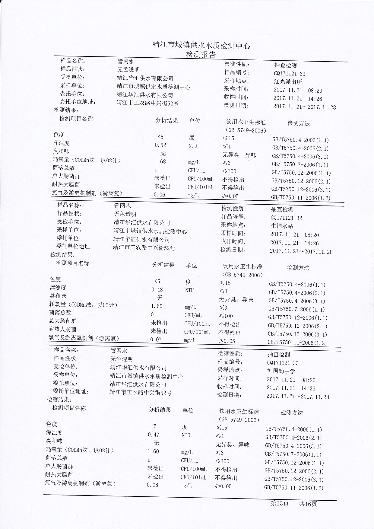 信息来源:华汇供水 ‖ 发稿作者:水质检验部 ‖ 发布时间:2018年1月24日 ‖ 查看2388次 ‖