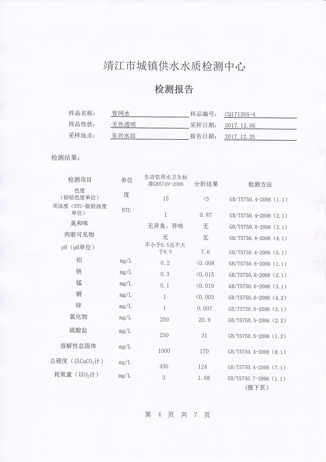 出厂水检测报告2017.12.05