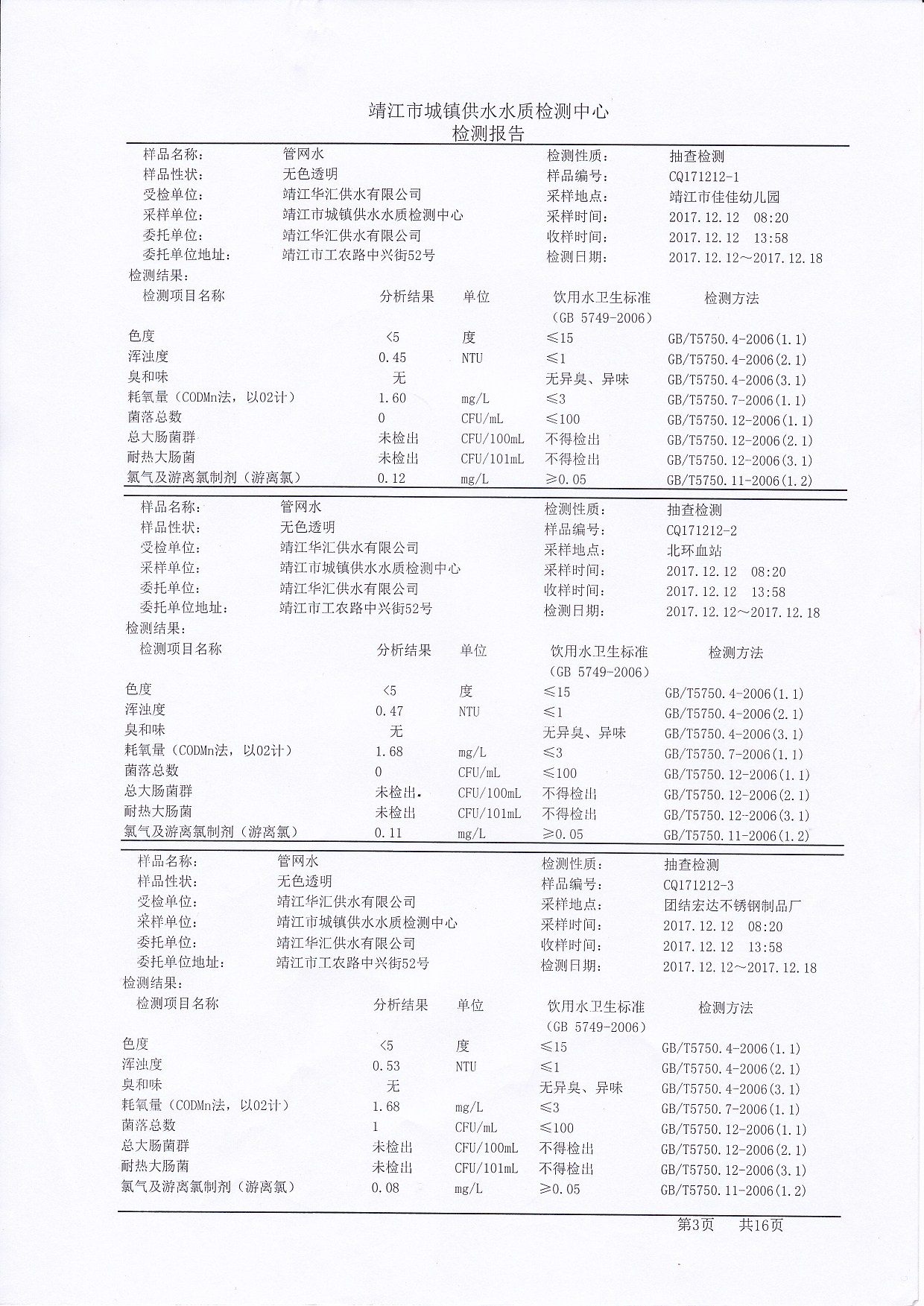 管网水检测报告2017.12.12