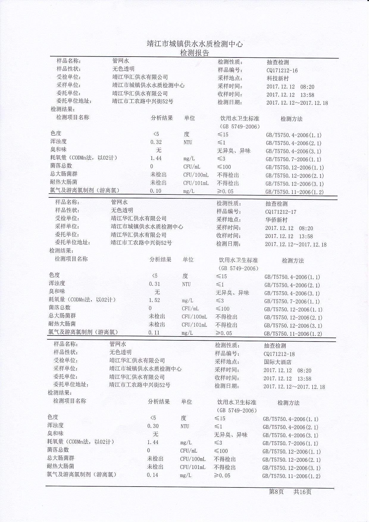 信息来源:华汇供水 ‖ 发稿作者:水质检验部 ‖ 发布时间:2018年2月6日 ‖ 查看2288次 ‖