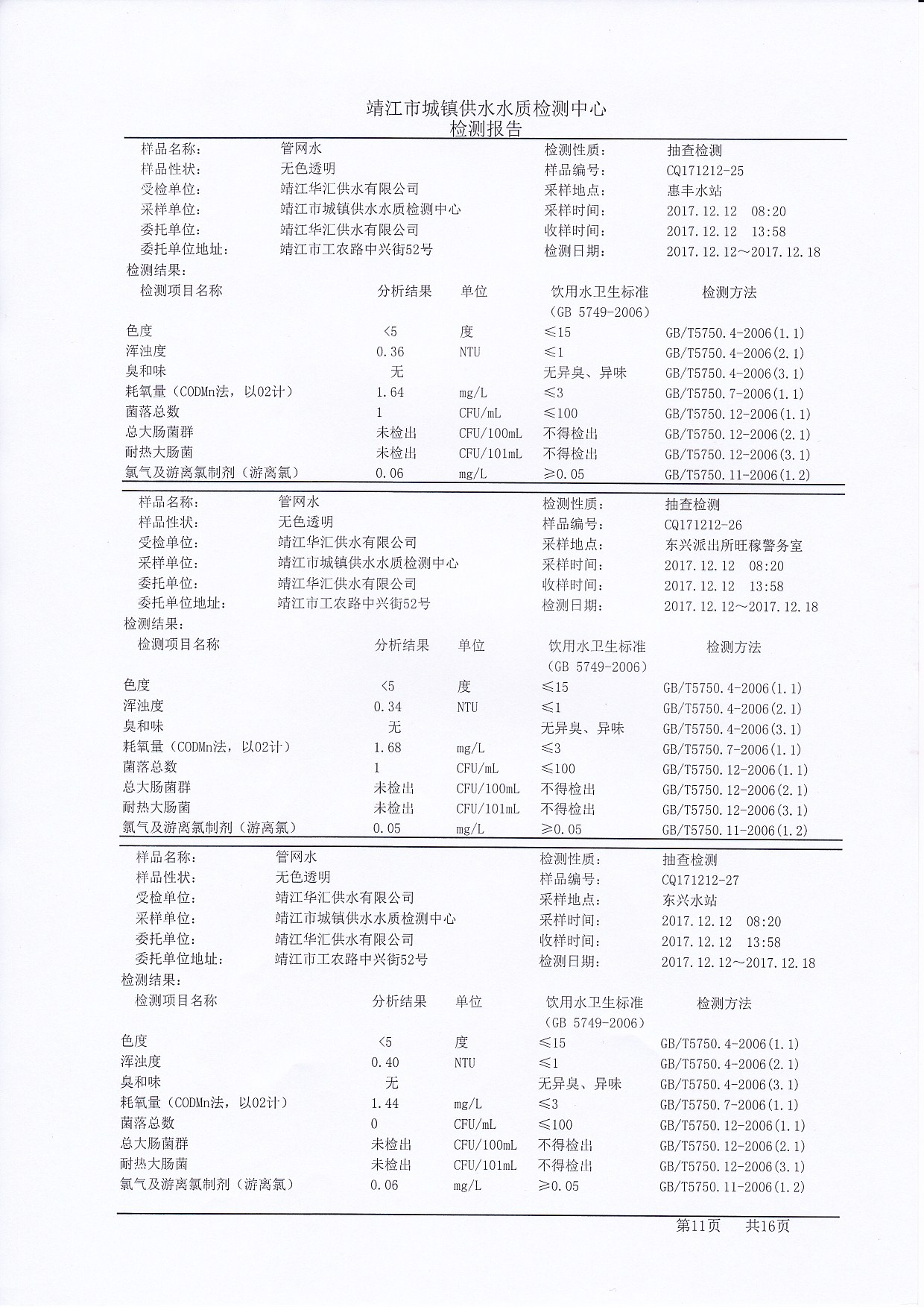 管网水检测报告2017.12.12