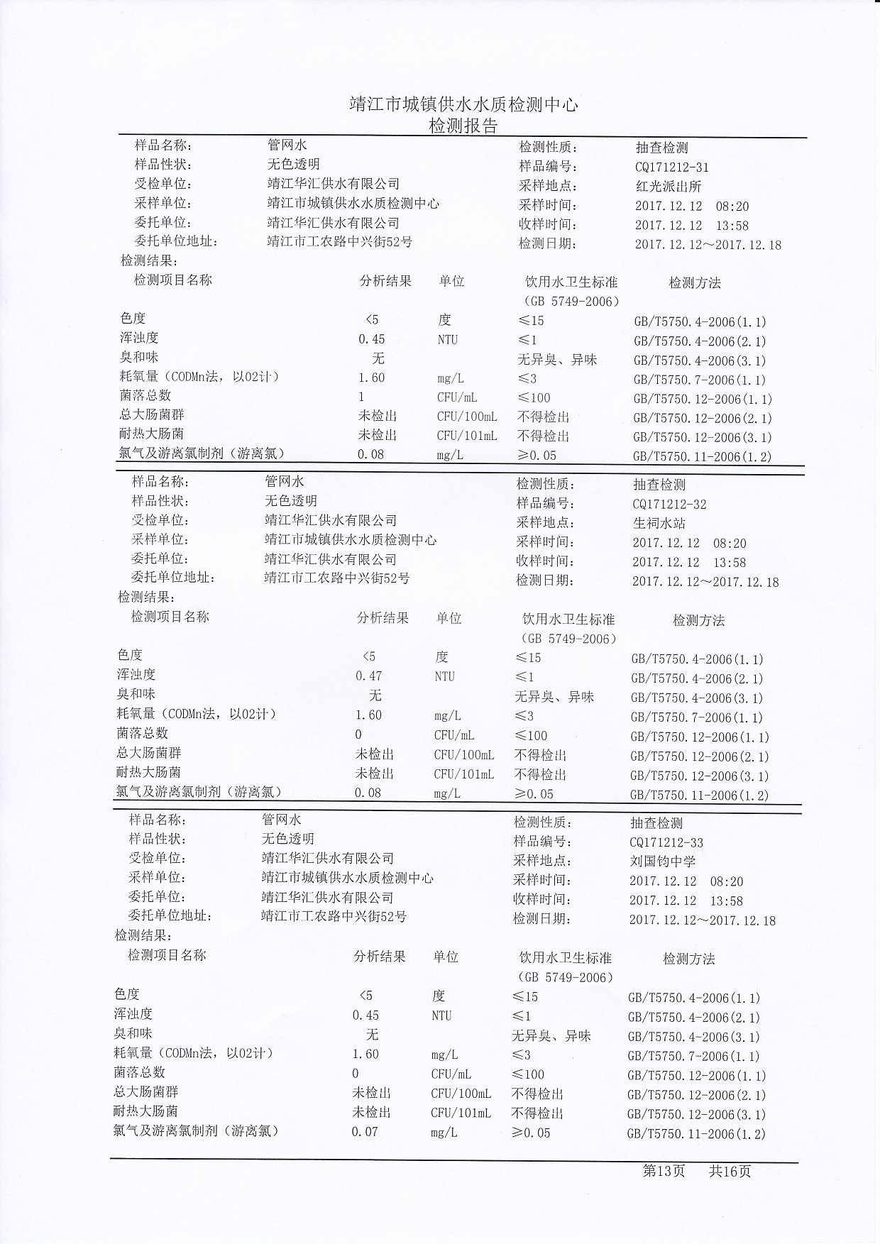 信息来源:华汇供水 ‖ 发稿作者:水质检验部 ‖ 发布时间:2018年2月6日 ‖ 查看2335次 ‖