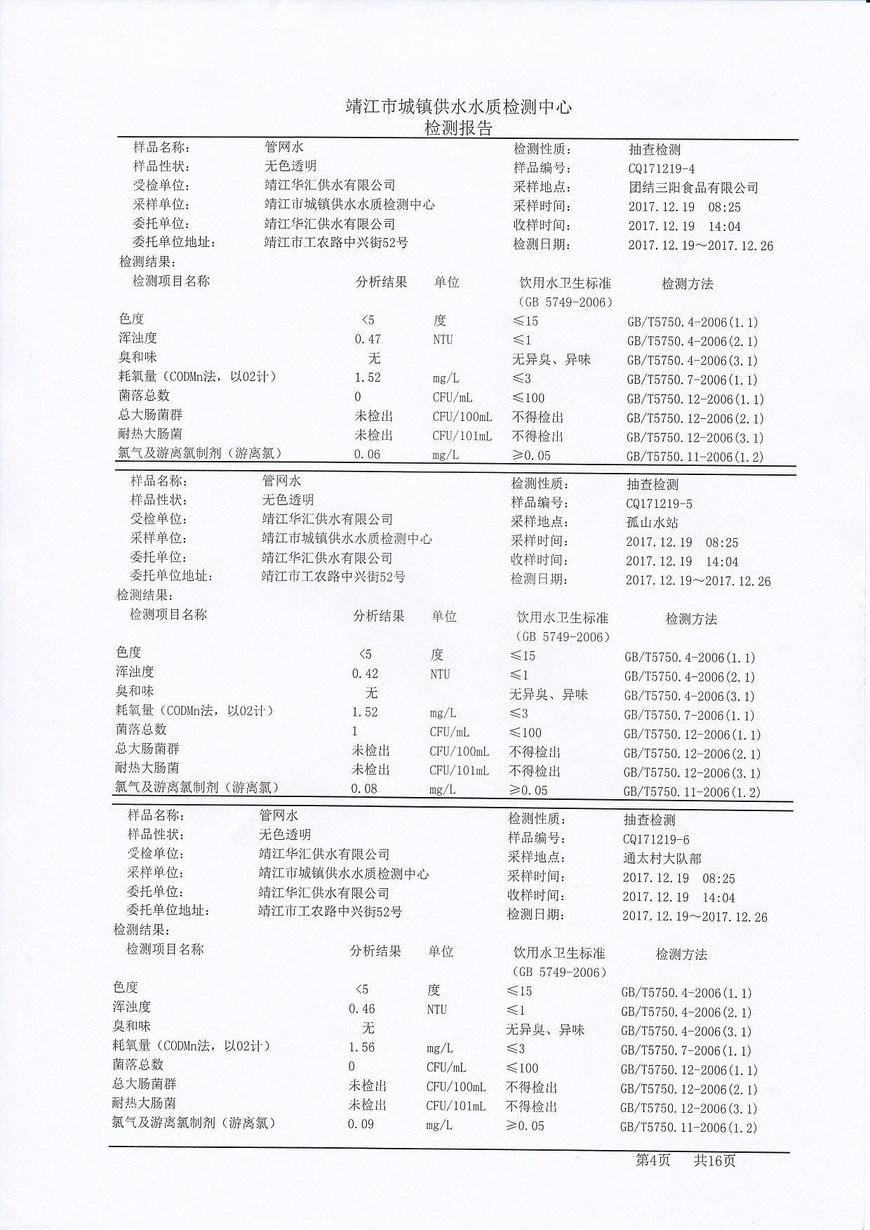 信息来源:华汇供水 ‖ 发稿作者:水质检验部 ‖ 发布时间:2018年2月6日 ‖ 查看2341次 ‖