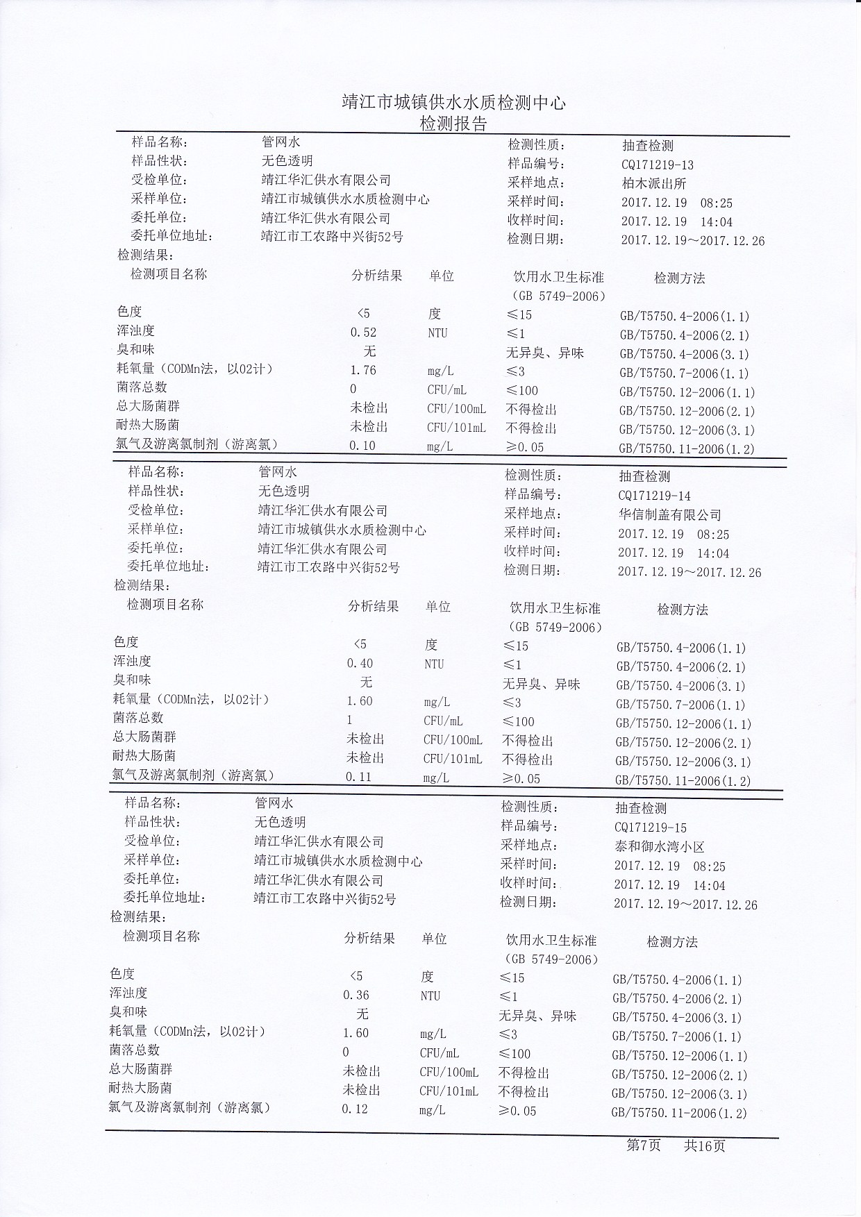信息来源:华汇供水 ‖ 发稿作者:水质检验部 ‖ 发布时间:2018年2月6日 ‖ 查看2370次 ‖
