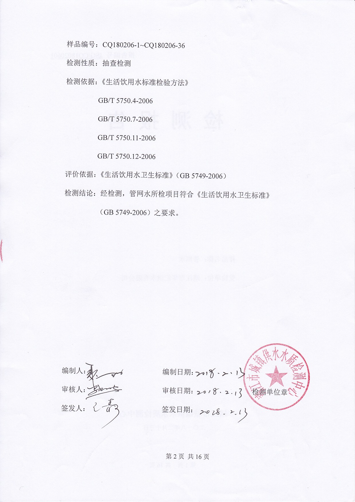 管网水检测报告2018.02.06