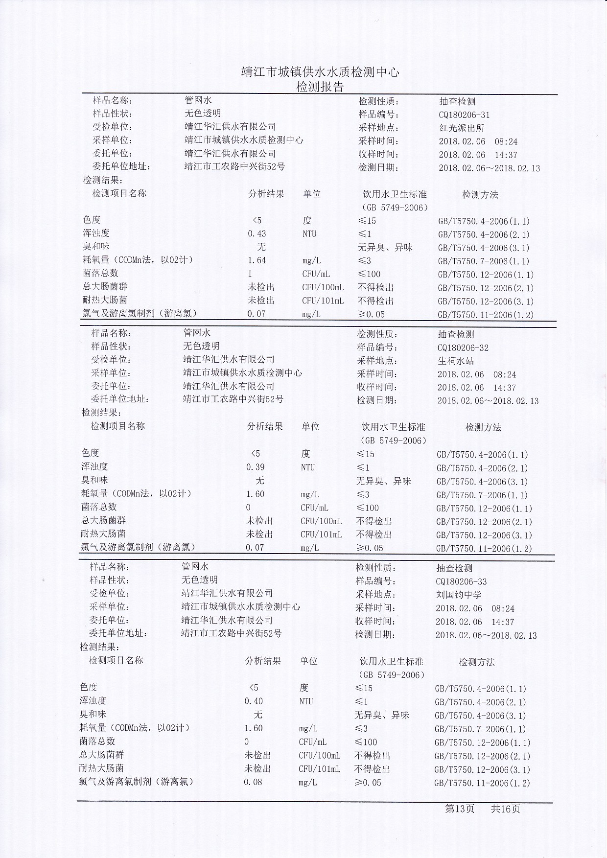 管网水检测报告2018.02.06