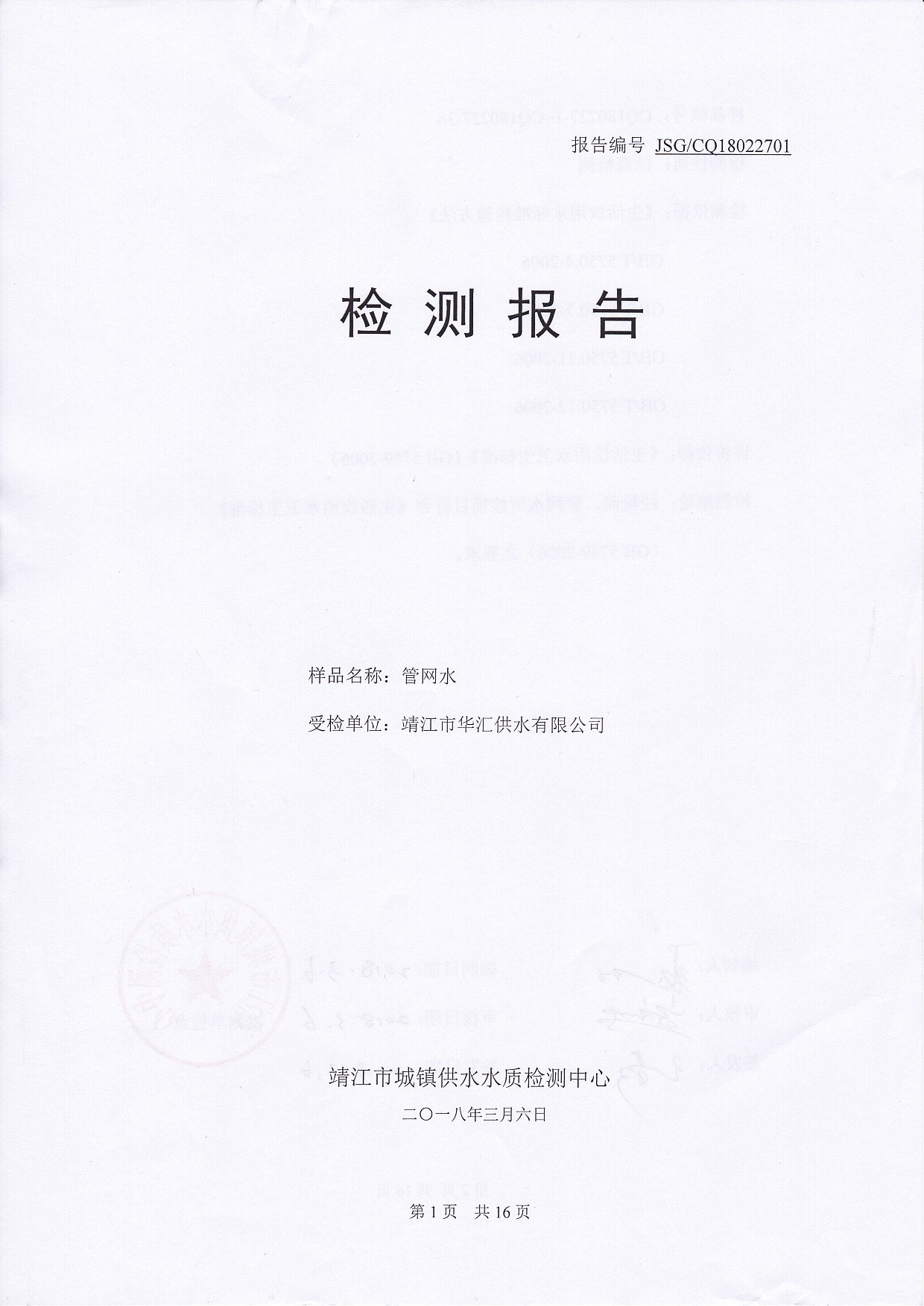 信息来源:华汇供水 ‖ 发稿作者:水质检验部 ‖ 发布时间:2018年4月4日 ‖ 查看2437次 ‖