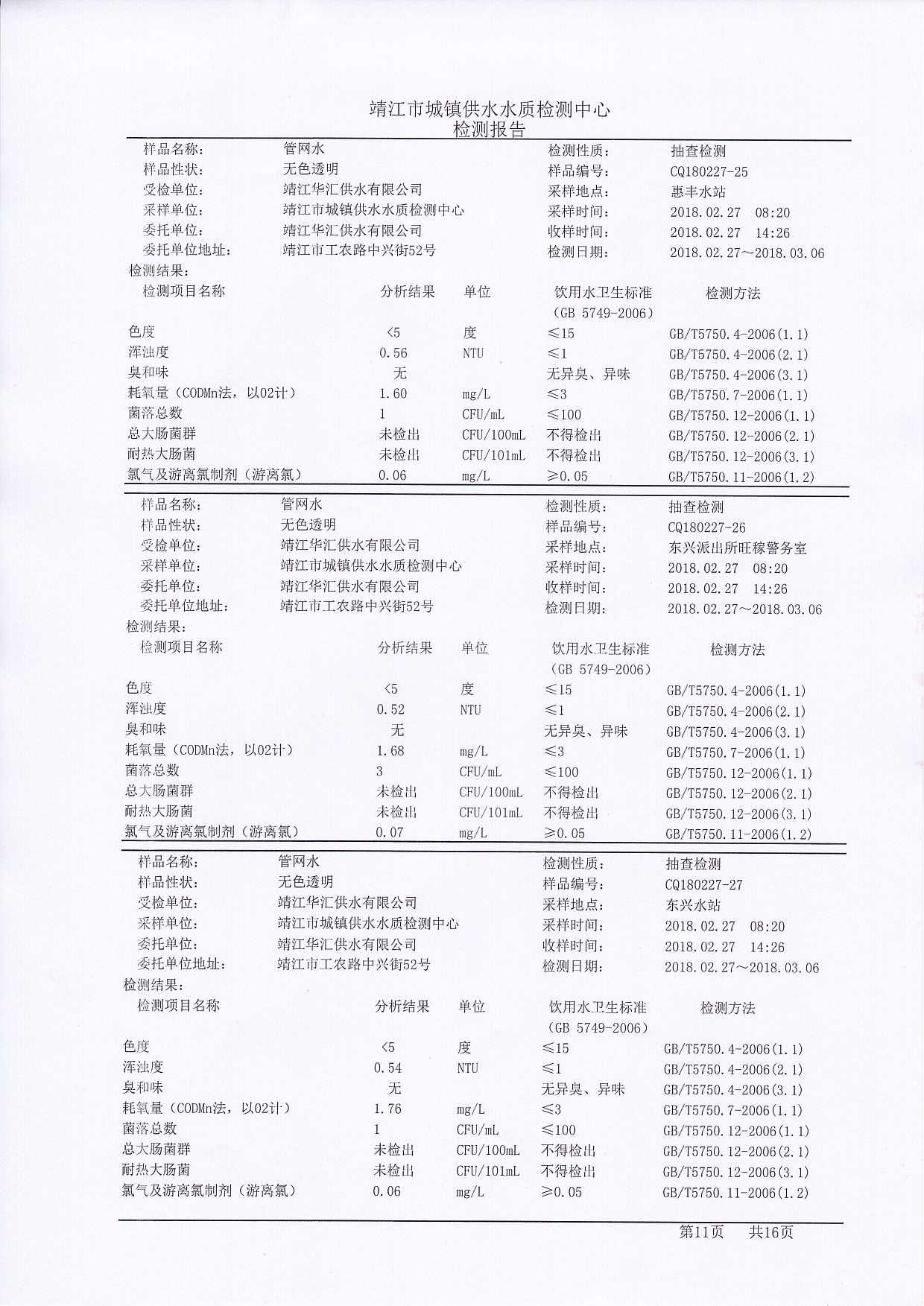 信息来源:华汇供水 ‖ 发稿作者:水质检验部 ‖ 发布时间:2018年4月4日 ‖ 查看2517次 ‖