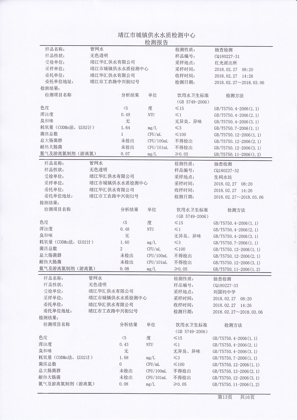 信息来源:华汇供水 ‖ 发稿作者:水质检验部 ‖ 发布时间:2018年4月4日 ‖ 查看2588次 ‖