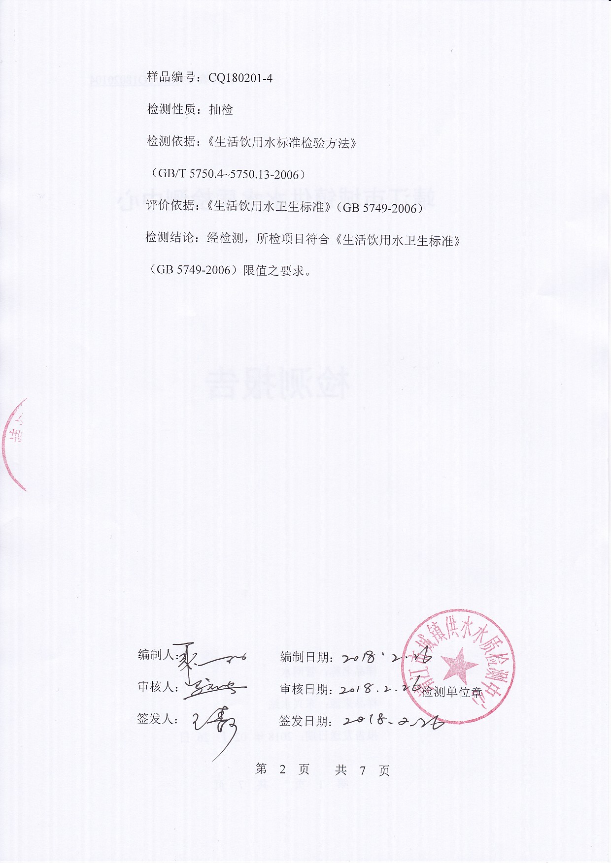 信息来源:华汇供水 ‖ 发稿作者:水质检验部 ‖ 发布时间:2018年4月17日 ‖ 查看4530次 ‖