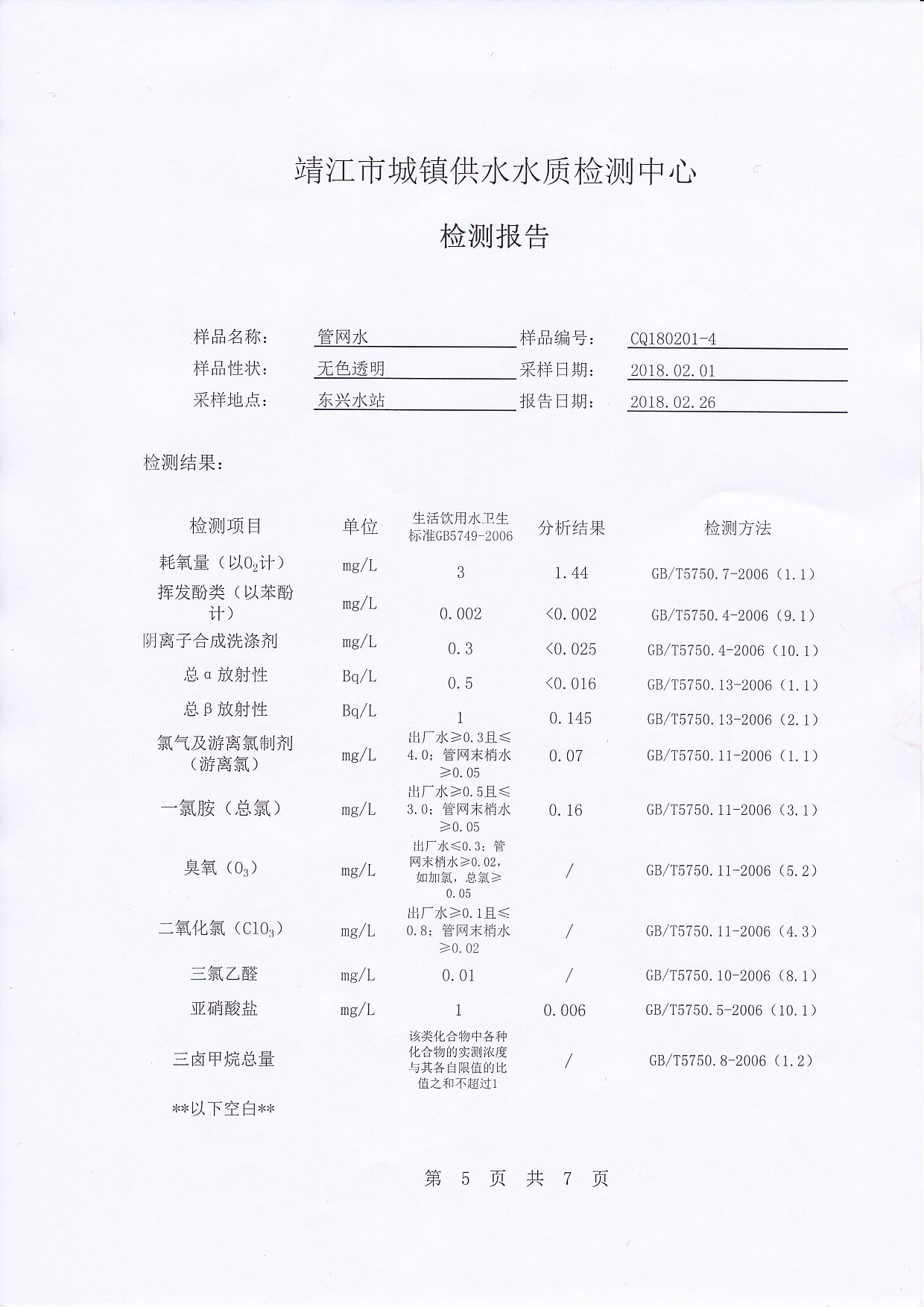 出厂水检测报告2018.02.01