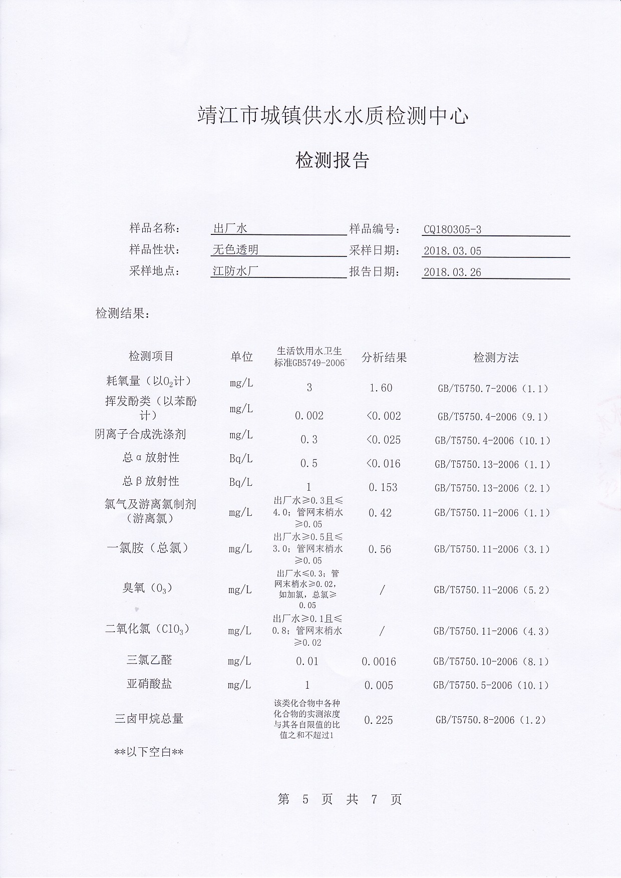 出厂水检测报告2018.03.05